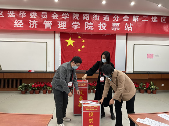 前期宣传工作至此,从2021年8月27日开始,历时两个多月的人大代表换届选举工作顺利落下帷幕。beat365正版唯一官网投票站在海淀区选举委员会学院路街道分会和学校党委的领导下,经过选民登记、公布选民名单、提名推荐、酝酿讨论、民主协商代表候选人以及选举投票等工作阶段,学院选举工作组全体人员以高度的责任感和使命感,按照法定程序,严格规范环节,认真落实细节,圆满完成了此次选举工作任务。