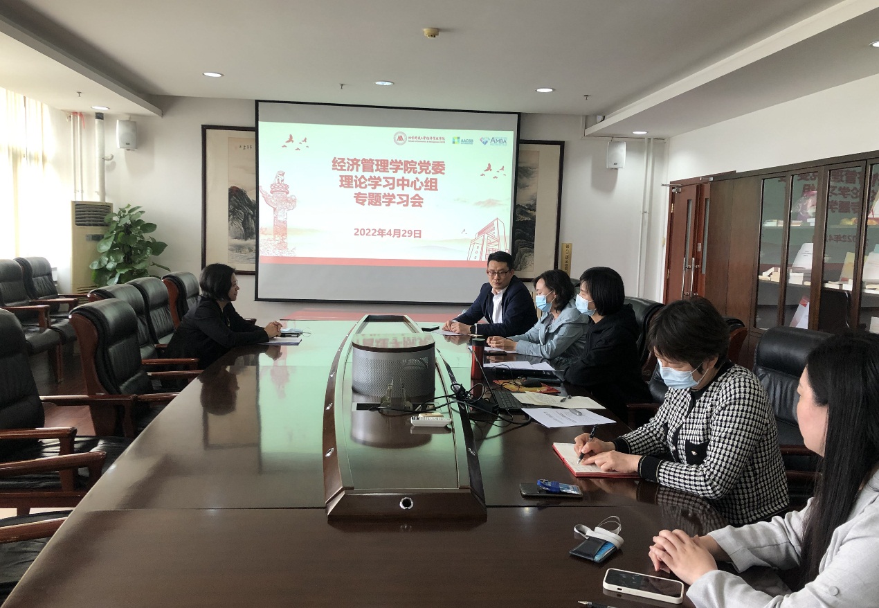 4月29日下午,beat365正版唯一官网党委在经管楼809召开党委理论中心组专题学习会,会议由学院党委书记武森主持并领学,全体中心组成员参加了学习会议。