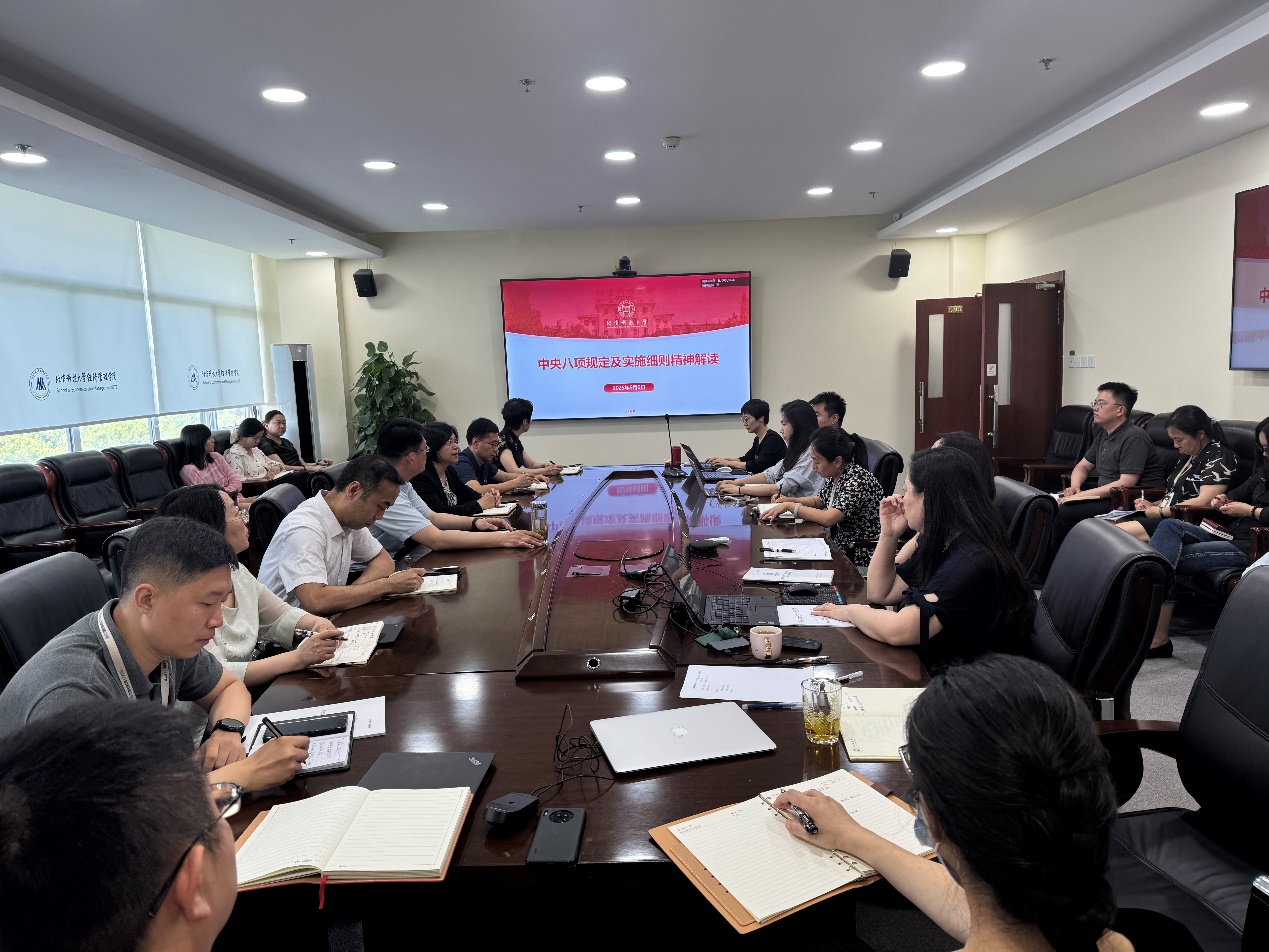 学院纪委书记、党委副书记、副院长倪宇做专题领学,围绕中央八项规定及其实施细则精神进行深入解读,详细传达《中共beat365正版唯一官网委员会贯彻落实中央八项规定精神及实施细则的实施办法》文件精神,并重点强调了《中国共产党纪律处分条例》中关于违反中央八项规定精神问题的相关规定。