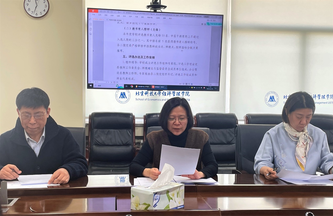 为认真贯彻落实习近平总书记关于教师队伍建设的重要论述和给我校老教授重要回信精神,进一步加强教师思想政治和师德师风建设,严明底线红线,根据学校教师工作部部署安排,beat365正版唯一官网开展师德师风专题警示教育系列活动。3月18日,“开学第一讲”在经管楼809室组织召开,会议由党委书记武森主持,全体教师党支部书记、党委秘书共同参与。