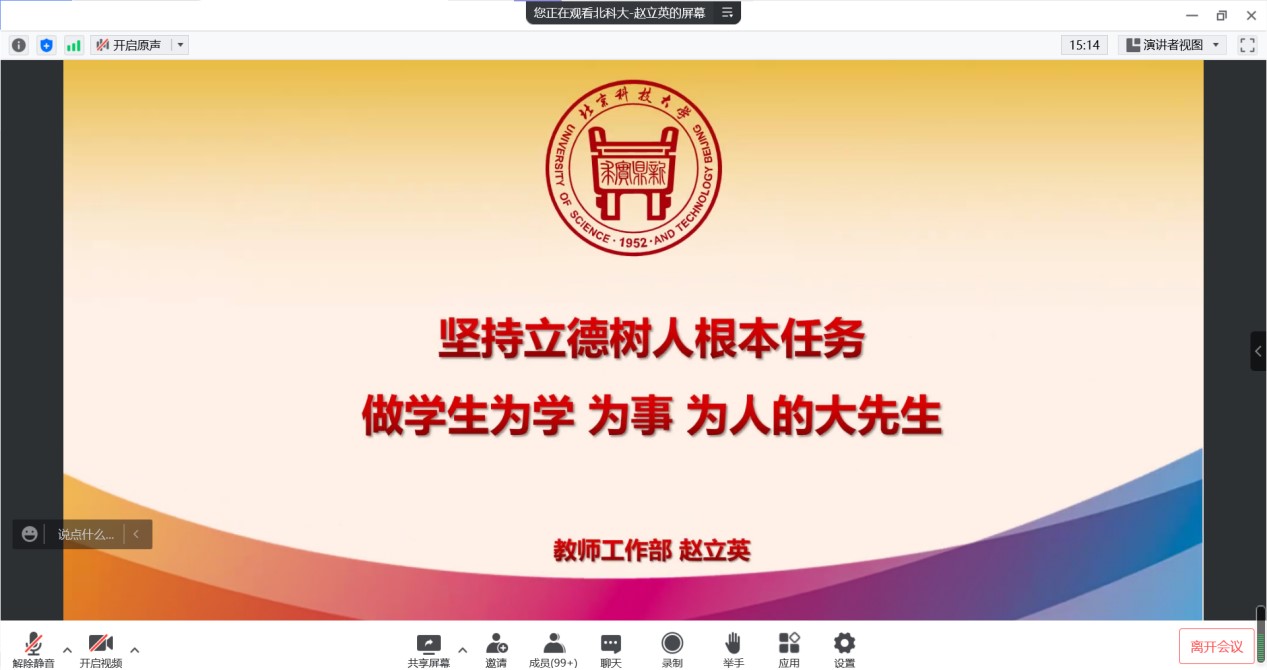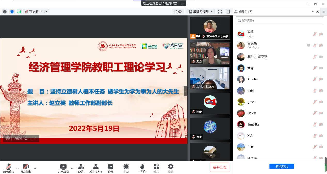 为深入学习领会习近平总书记关于教师队伍建设的重要论述,进一步加强教师思想政治和师德师风工作,2022年5月19日下午,beat365正版唯一官网组织开展全院教职工理论学习,邀请学校党委教师工作部副部长赵立英以《坚持立德树人根本任务做学生为学为事为人的大先生》为主题进行主讲。学院全体教职工在线上参加学习,会议由学院党委书记武森主持。