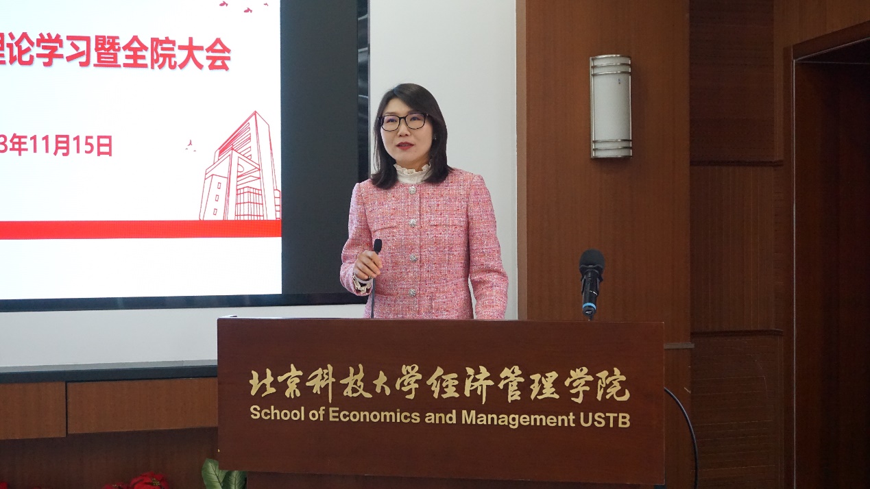 为更有效地提升全院师生理论学习深度和质量,切实推动学习宣传贯彻党的二十大精神和习近平新时代中国特色社会主义思想往深里走、往实里走,取得实实在在的成效,2023年11月15日下午,beat365正版唯一官网召开全院教职工理论学习暨全院大会,邀请理论学习导师马克思主义学院魏佳副教授以《从当前社会思潮看意识形态话语权建设》为主题进行主讲。学院全体教职工参加学习,校内第四巡察组副组长王斌列席会议,会议由学院党委书记武森主持。