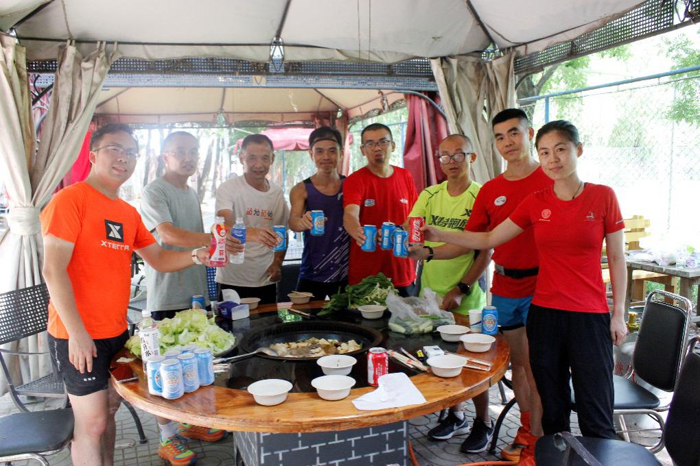 周日早晨天晴了,没有云层笼罩,于淼依然在不停地奔跑,此时的他状态不错,早上的天空很美,他还特意跑回志愿者服务站喊初其衡看日出,当看到志愿者睡得香甜,笑了笑不忍心就没打扰他们清梦。在平时的训练中,于淼教练对大家要求是极为严格的,还记得从2019年从沙漠出来时大家强烈要求休息一段时间调整,于淼是极不情愿,当看到大家可怜巴巴的眼神,无奈之下给大家一周的时间调整。要知道,这已经对我们很宽容了。如今回头看看,很感激教练对我们的严厉,队员们从原来进山训练下来腿疼三四天,到现在下山还能跑个半马,都是被训练出来的,心理上从拒绝到看到变化的欣喜,对教练,俱乐部的小伙伴们都是心怀感激。
