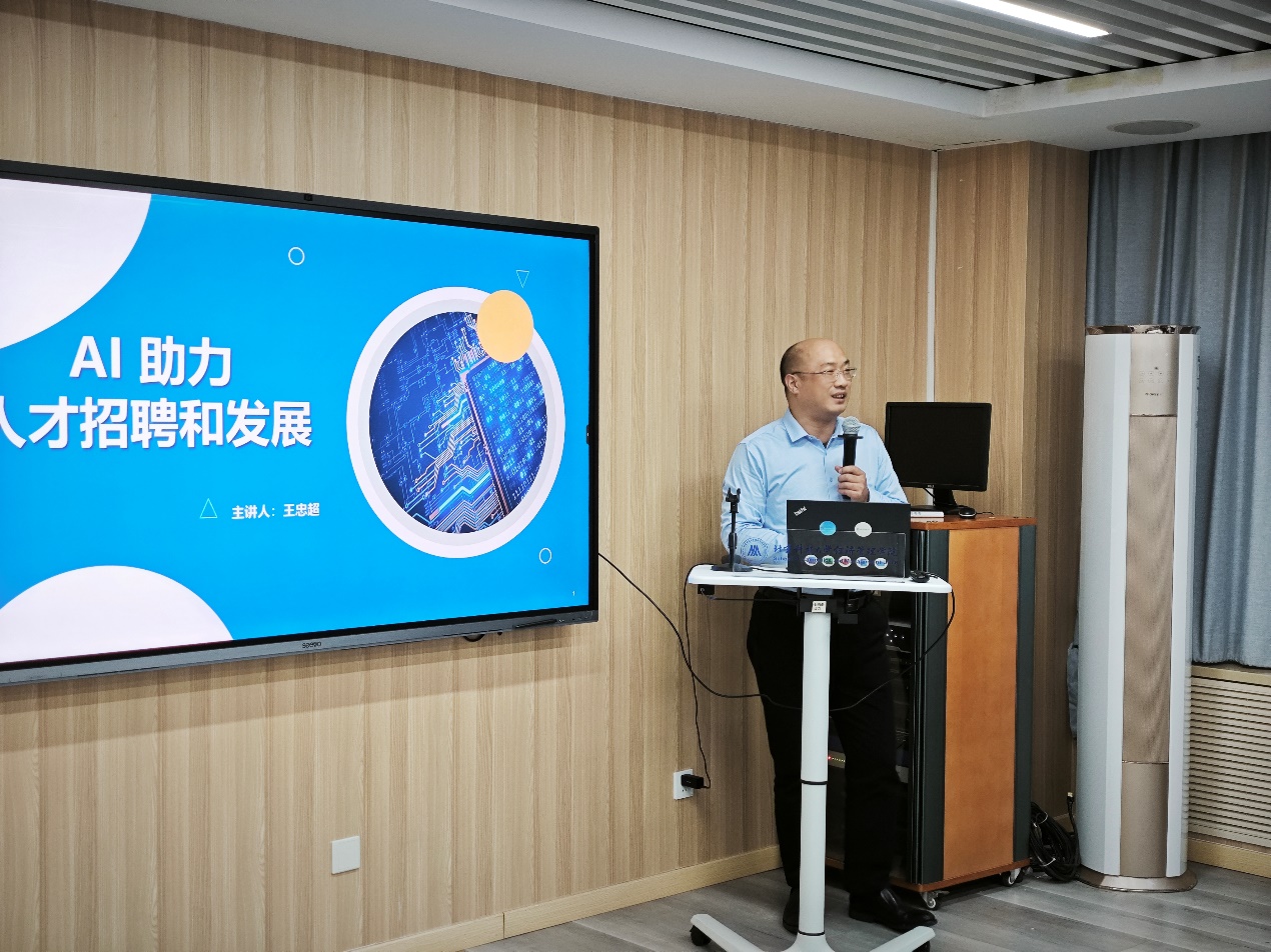 王忠超校友的分享题目为《AI工具助力人才招聘和发展》。他通过现场教学的方式,让校友们亲身体验了AI工具的应用,并深刻认识到了其带来的效率提升。他的分享引发了现场的热烈讨论。