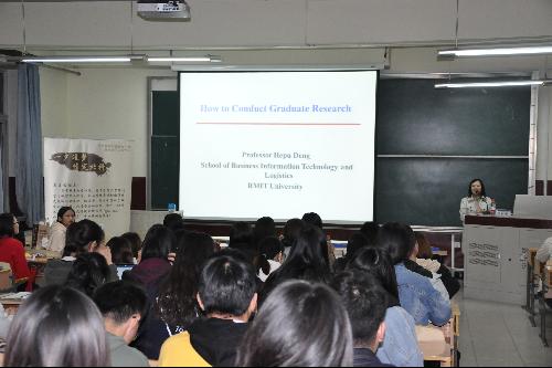 20181010日,“管理大视野——经管校友讲坛”第二十四讲在管庄校区教学楼401举办,这也是“管理大视野”活动首次落足管庄校区。本期讲座主题为:How to Conduct Graduate Research(研究生阶段应当如何做研究)。主讲嘉宾为我院邓和浦校友。邓和浦教授现于澳大利亚墨尔本皇家理工大学商业信息技术与物流学院任职。主要研究领域包括决策分析、数字商务、知识管理、电子政府在商务领域中的应用,已在国际顶尖学术期刊或国际会议上发表研究200余篇。邓和浦教授在跨文化环境中的高等教育工作和教学方面经验丰富,毕业后曾任高中数学教师,后进入武汉科技大学商学院任讲师。19987月进入莫纳什大学计算机和信息技术学院担任讲师,2000年入职澳大利亚墨尔本皇家理工大学。