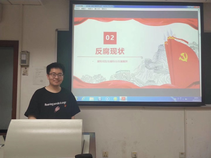 本次党员讲党课的主题为“反腐倡廉”,3位预备党员根从腐败的现状、反腐理论、反复特点以及大学生与反腐倡廉的关系等几个方面开展了本次党课,以一组触目惊心的数据唤起党员们对反腐工作的重视。对大学生来说,反腐倡廉有利于大学生自我发展,有利于国家培育人才,有利于构建和谐社会。
