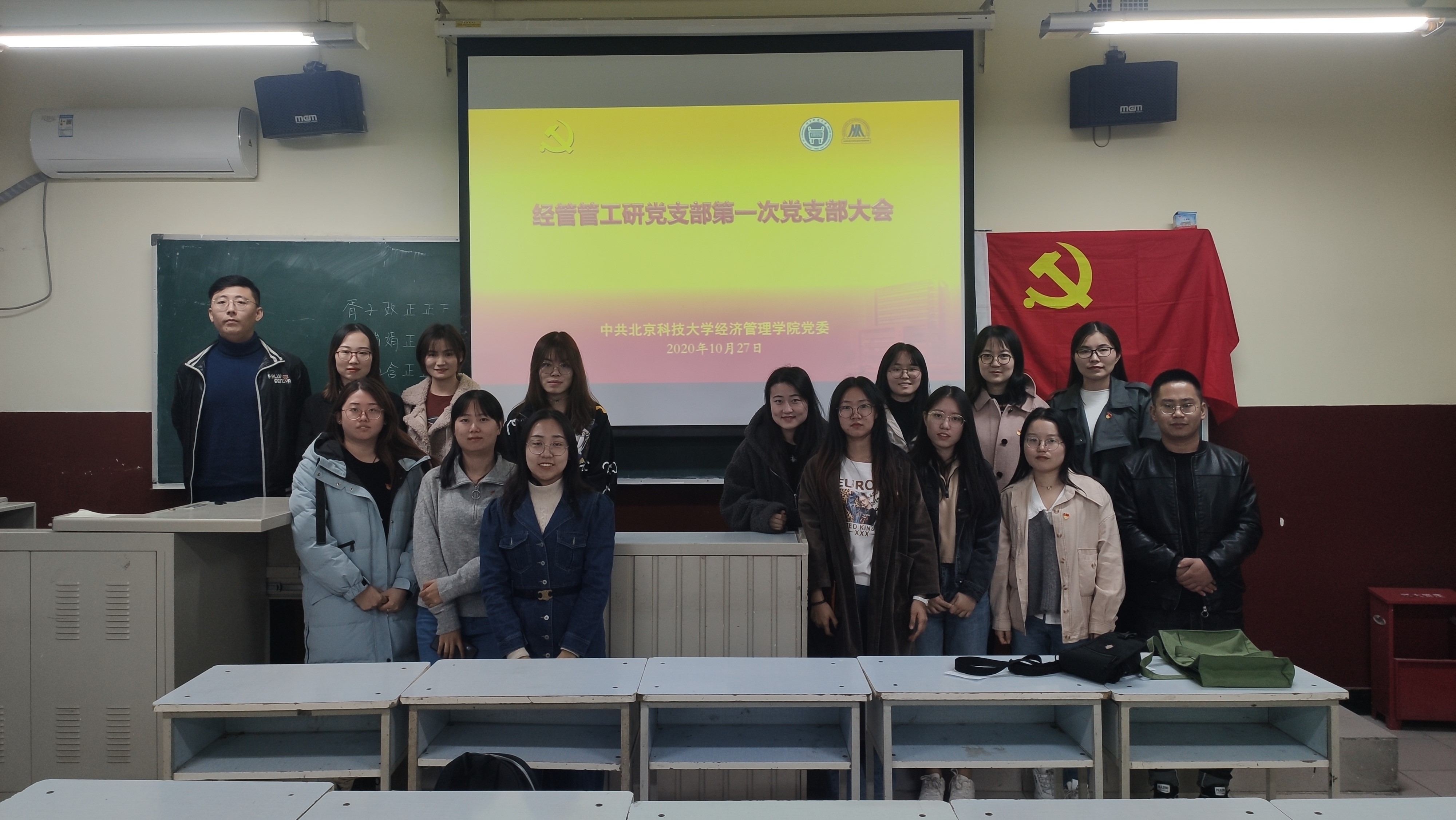 10月27日,beat365正版唯一官网管工研党支部于管庄校区教学楼205召开了第一次党员大会。会议由尹香婷同志主持,党支部全体成员参加会议,研究生辅导员李响、丁源老师出席会议。
