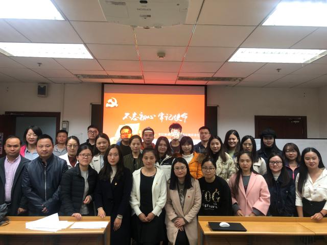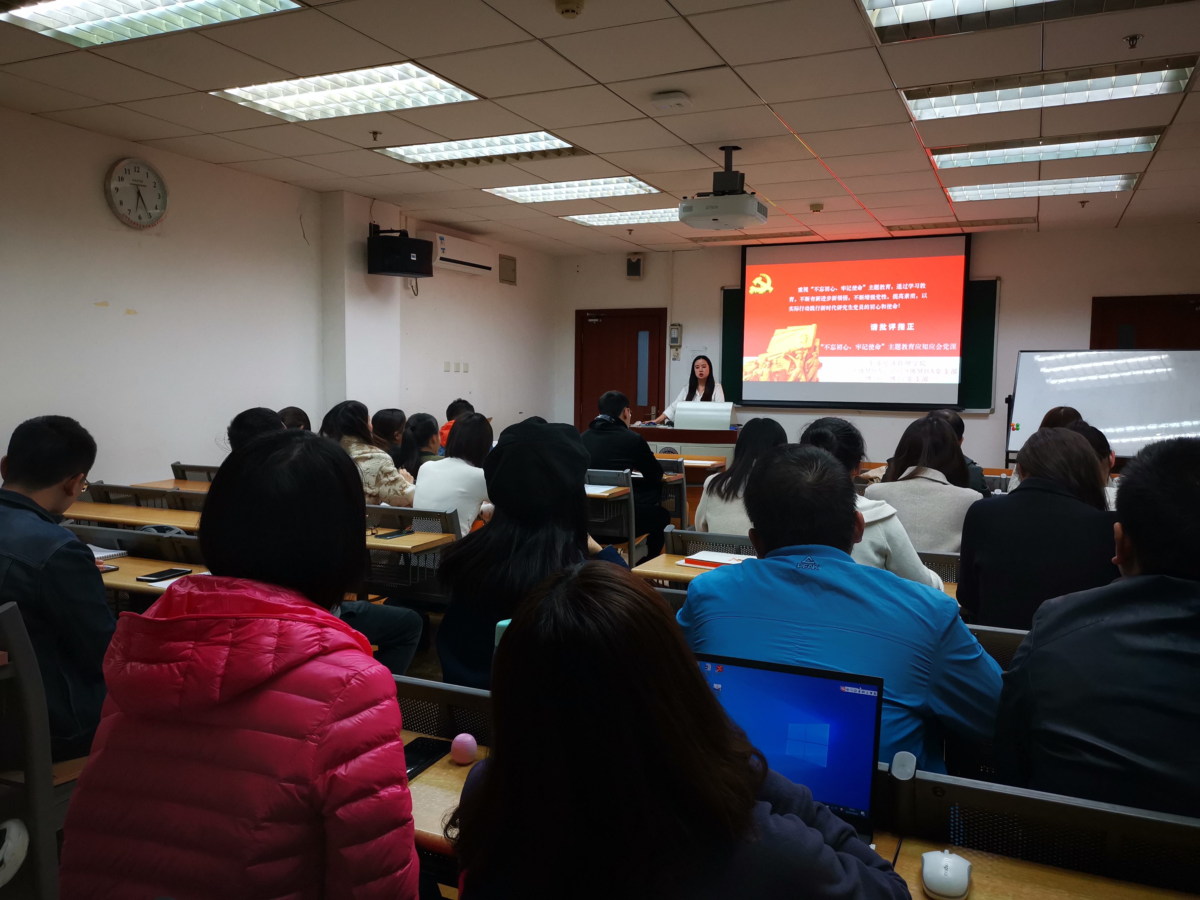 10月25日晚6点,在经管楼502教室,学院研究生辅导员张晓佳对在校研究生党员进行了“不忘初心,牢记使命”主题教育宣讲,2018级MBA、2019级MBA、博16和博17四个党支部全体党员参加。