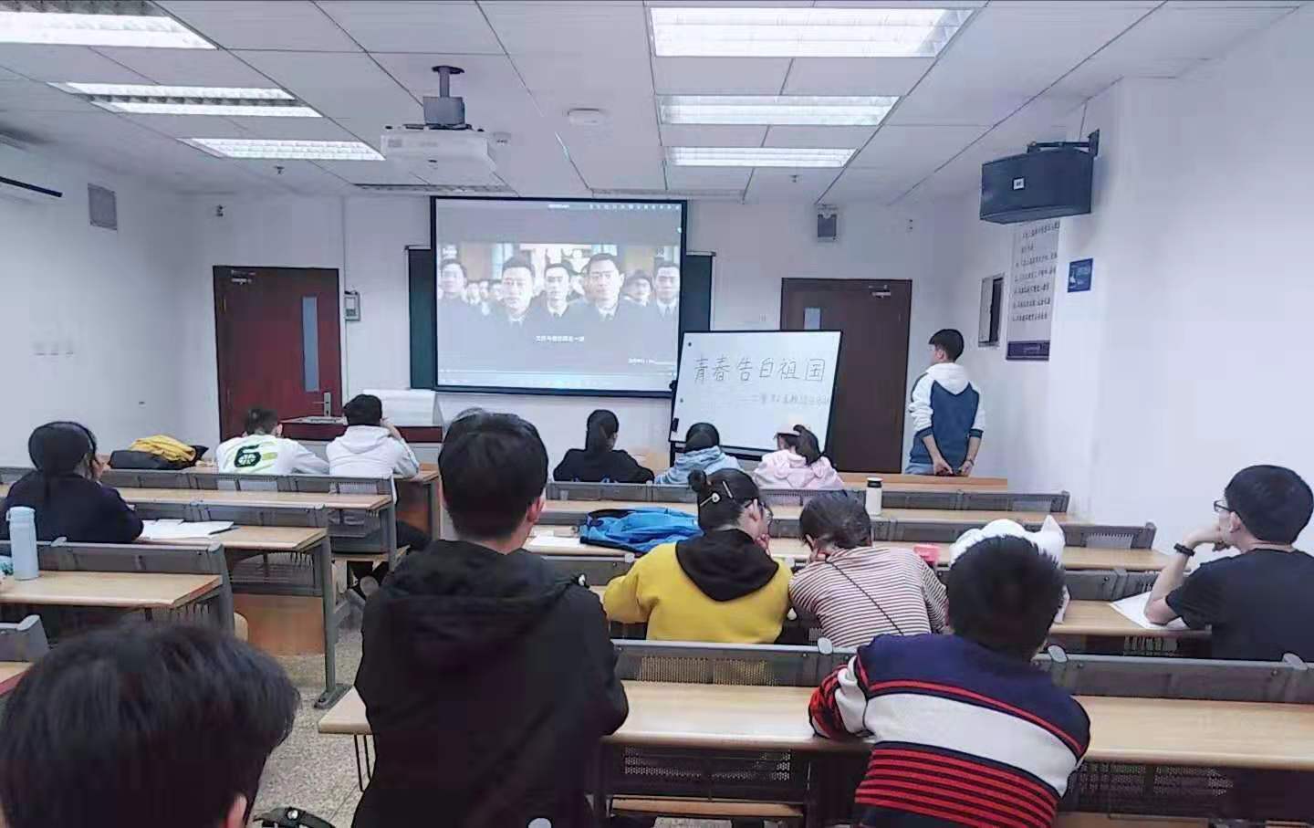 本次团日活动分为四个部分进行,首先,团支书带领同学们学习了习总书记对青年人的寄语,使同学们进一步地理解了习书记关于新时代新青年的思想;之后进行了第二个部分,全班同学一起观看视频《往昔峥嵘岁月》,回顾了革命先烈们为了新中国的发展而做出的卓越贡献。紧接着第三个部分,由蒋宇婷同学深情朗诵毛泽东的《沁园春雪》,赢得了大家的阵阵掌声。最后到了第四部分,全班同学合唱歌曲《我和我的祖国》,在歌声中大家回顾着中国的蓬勃发展,感慨着我们现在的美好生活,作为新青年更要大力弘扬以爱国主义为核心的伟大民族精神,表白中国共产党,永远热爱我们的祖国。在活动结束之后工管182班一起合影留念。