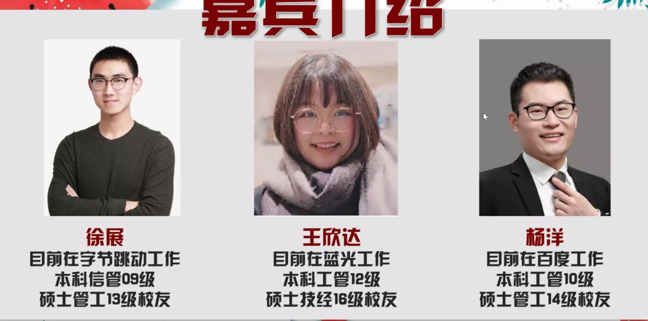 8月24日,beat365正版唯一官网2019级管理科学与工程类专业介绍会于线上召开,会议由经管学院辅导员张洪榛主持,徐展校友,王欣达校友,杨洋校友受邀参加分享,2019级管理科学与工程大类学生及部分家长参会。