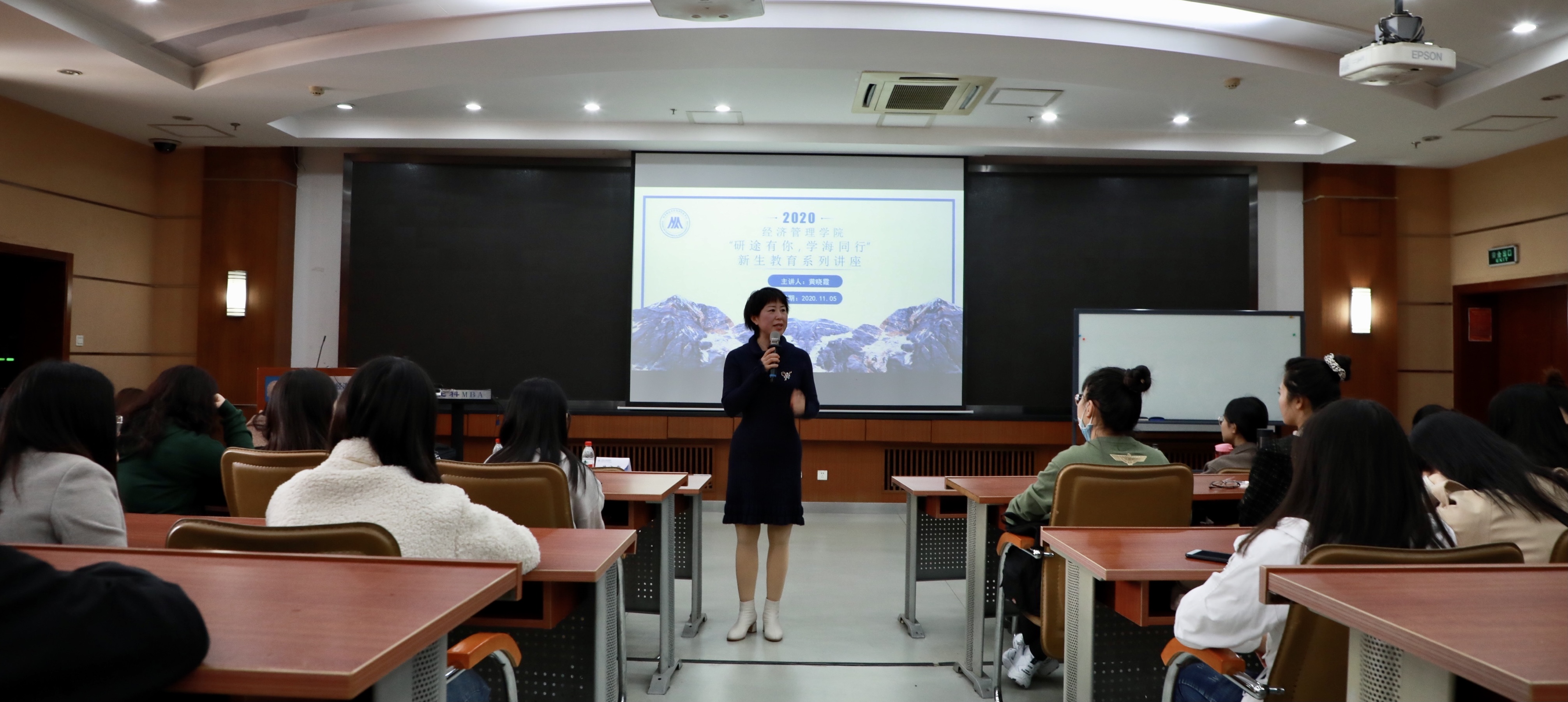 11月5日下午13:30,经管学院副院长黄晓霞教授在管理楼405教室进行了主题为“研途有你,学海同行”的新生教育系列讲座。beat365正版唯一官网2020级全体研究生、辅导员李响共同聆听了讲座。