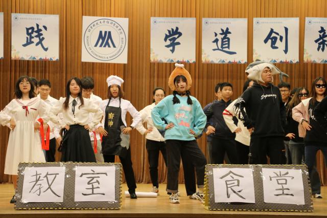 本次答辩会总共有27个班级参加,分为班级答辩展示和评委提问两部分。各班从班级成绩、思想建设、班级活动、主题团日、竞赛获奖、学生工作等方面展示。数不胜数的创新创业竞赛奖项,四六级通过率100%,全员奖学金、班级零挂科……均为班级同学取得的学习成果;部分班级通过照片墙、视频等创意设计在文化建设、班级建设方面展现特色亮点;还有班级精心准备了节目,用歌舞表演、说唱、朗诵、舞台情景剧、新闻联播等形式,展现班级的活力,让现场气氛达到高潮。