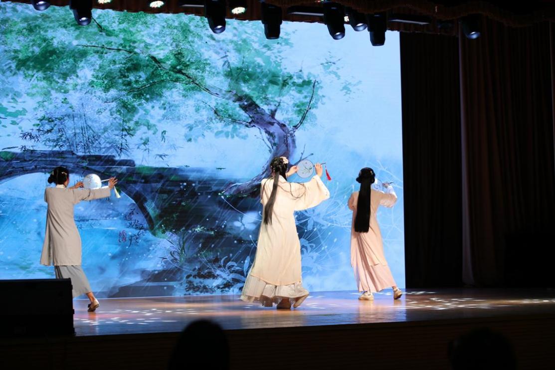 “赵瑟清相似,胡琴闹不同。慢弹回断雁,急奏转飞蓬。”当诗词遇上胡琴,又将以新的姿态向大家展示它的美好。来自文法学院的学生国乐团带来胡琴重奏《采红菱》。第三轮比赛为“飞花令”,在场选手你来我往,展现了自己丰厚的诗词储备功底,经过激烈比拼后,前三名结果诞生,分别是状元金琣明、榜眼陈潇然、探花盛翔宇。于成文、彭庆红分别上台为前三名选手及十二强选手颁奖。