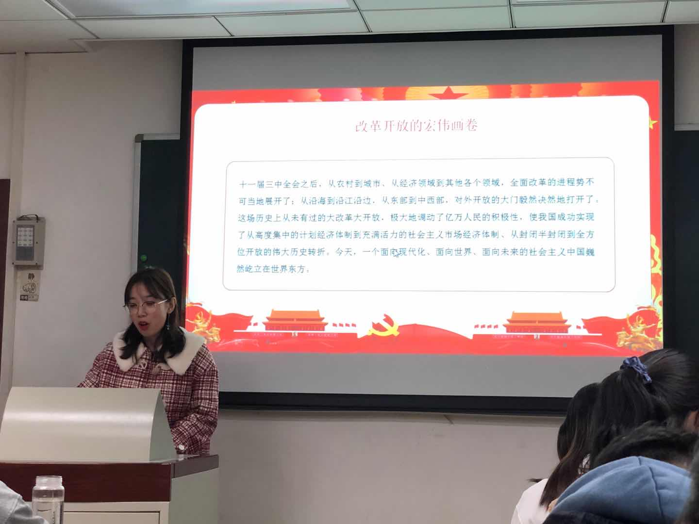 自1978年12月召开中共十一届三中全会起,改革开放虽已经40多年,仍是一段尚未完结的历史,目前正处于关键时期,进入了一个新的时代。为了让党员、入党积极分子更全面了解为什么实行改革开放、改革开放给中国带来了哪些变化等,经管本科低年级党支部5位预备党员带领同学们详细的学习了改革开放史。