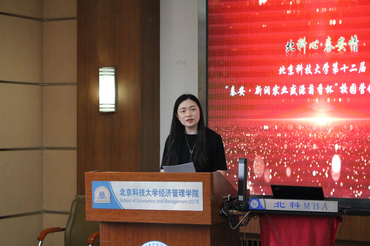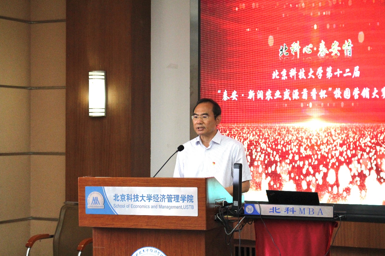 与会嘉宾共同观看了闭幕式视频《北科心·秦安情》,回顾了开赛以来各团队的精彩表现。随后武森表示,经管学院积极贯彻落实中央和学校精准扶贫的基本方略,举全院之力助力秦安县脱贫,营销大赛便是其中一项有力举措,希望各位同学再接再厉,持续助力秦安发展。