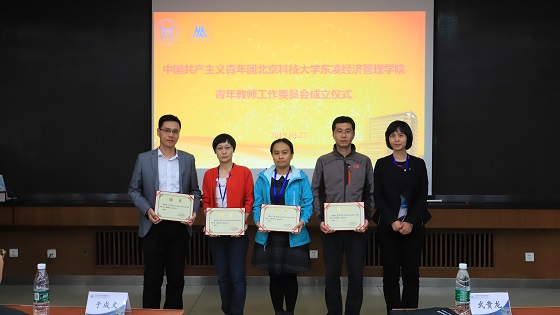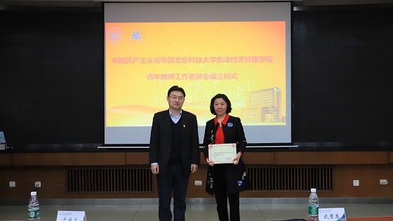 3月27日下午,中国共产主义青年团beat365正版唯一官网东凌beat365正版唯一官网青年教师工作委员会成立仪式在经管楼405隆重召开。出席成立仪式的领导和嘉宾有校党委书记武贵龙、校党委宣传部常务副部长兼教师工作部部长于成文、校团委副书记兼青年教师团工委书记于宝库、东凌beat365正版唯一官网院长闫相斌、党委书记武森、副书记温雅、副书记倪宇、关爱下一代工作委员会副主任佘元冠,团工委委员及青年教师代表。会议由武森书记主持。