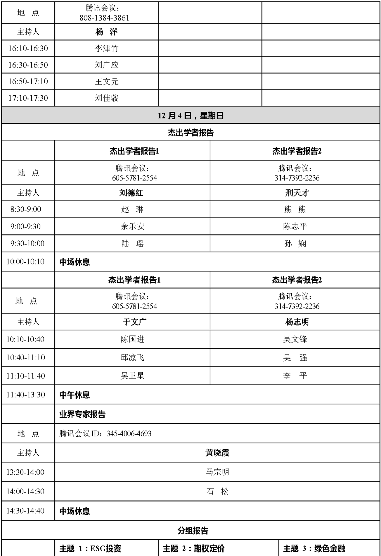 会议议题包含但不限于:债务风险、债务管理、金融安全、资本市场发展、资产定价、资产配置、期货证券、风险管理、金融创新、数字金融、互联网金融、大数据金融、金融科技、保险精算、数字保险、保险科技、供应链金融、家庭金融、养老金融、行为金融、普惠金融、区块链、绿色金融等