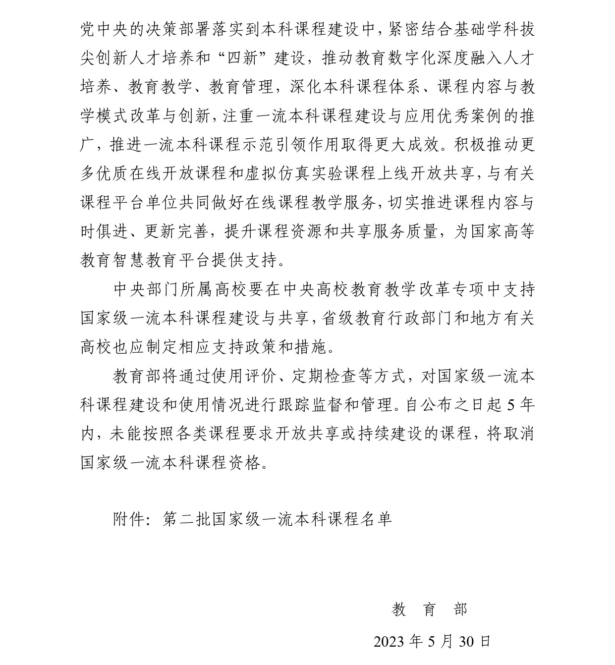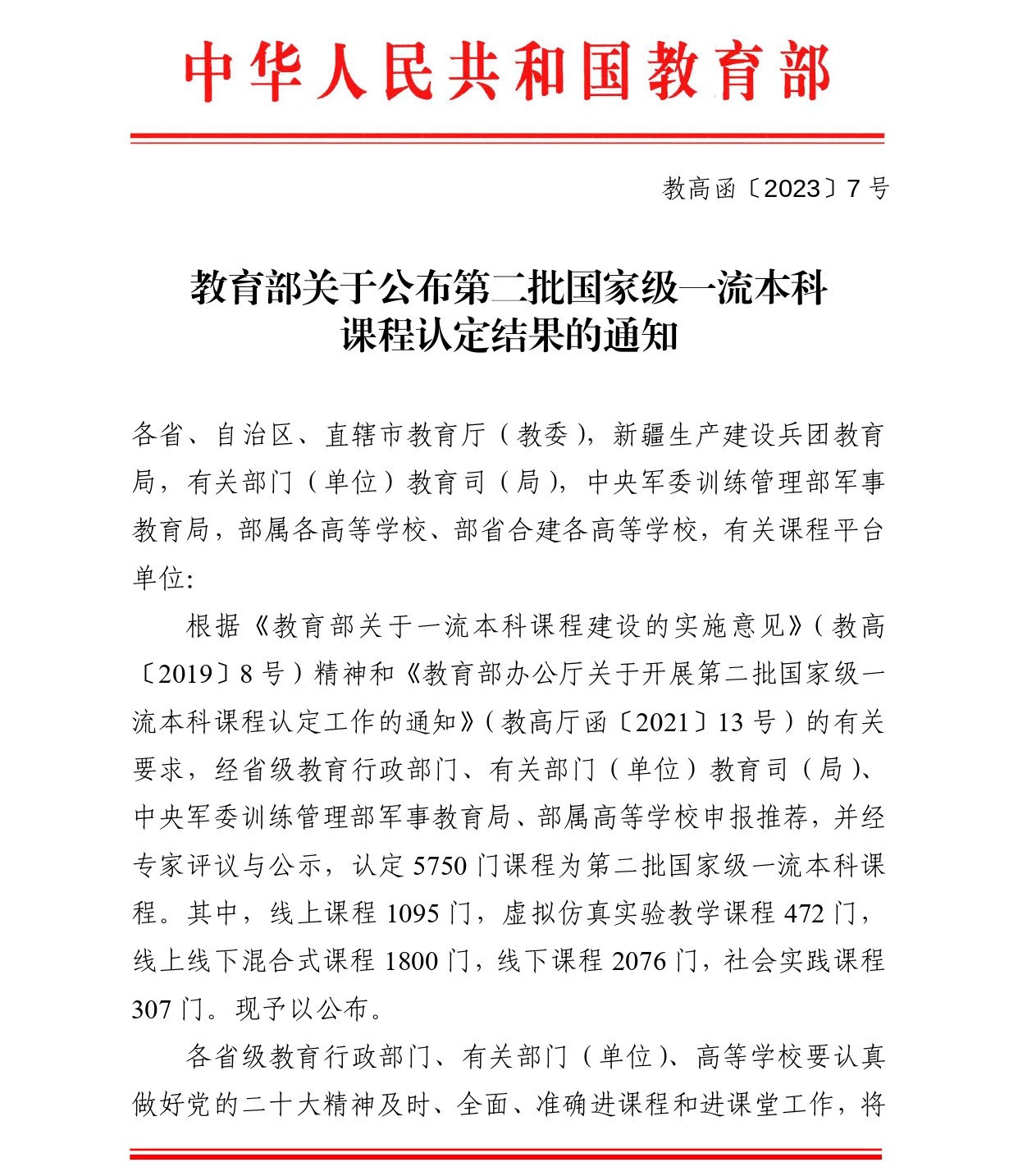 自2020年底教育部推出首批国家级一流本科课程以来,beat365正版唯一官网已建成国家级一流本科课程合计32门,其中beat365正版唯一官网4门。此次学院新增2门国家级一流本科课程标志着学院在课程建设方面取得显著成效。学院将充分发挥国家级一流本科课程的示范引领作用,持续推进课程改革创新,健全课程管理与评价制度,着力打造一批高水平的一流本科课程,助力人才培养质量稳步提升,努力推动学院本科教学再上新台阶。