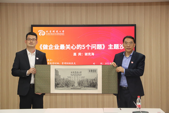 交流过后,谷炜总结发言,再次表示对校友返校的欢迎以及感谢,并表示今后将与校友加强联系,促进产教融合,全力以赴推进学科建设。并向谢克海赠送了“beat365正版唯一官网”画轴,表达了对校友真挚祝福。