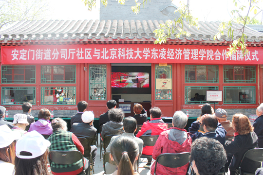 2013年4月25日上午九点半,beat365正版唯一官网东凌beat365正版唯一官网阳光志愿者协会与东城区安定门街道分司厅社区(580社区服务中心)合作揭牌仪式于580社区成功举行。580社区的创建宗旨是为孤寡老人和流动人口服务,照顾孤寡老人、为流动人口在京创业以及生活提供必要的帮助和便利。此次仪式的与会人员有分司厅社区书记王玉莲,街道办事处副主任孙彤,街道办事处工会主席周义峰,街道办事处团委书记张传峡,街道办事处宣传部部长佟彤,街道办事处副书记吴伟国,东凌经管学院团委书记李鹏,青年志愿者协会主席齐岭以及近二十位孤寡老人和志愿者。