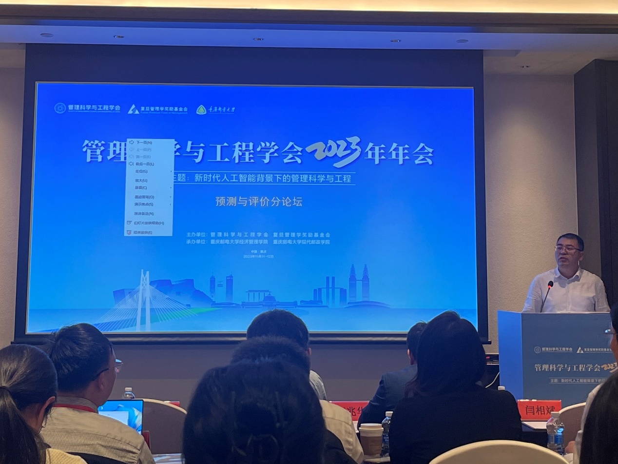 2023年11月11日至12日,管理科学与工程学会2023年年会在重庆召开。会议由管理科学与工程学会、复旦管理学奖励基金会主办,重庆邮电大学beat365正版唯一官网和现代邮政学院承办。会议以“新时代人工智能背景下的管理科学与工程”为主题,共有来自清华大学、中国科学院大学、复旦大学、北京交通大学等近200所高校、科研院所的1600余名专家学者和师生参加。会议设有工程管理分论坛、大数据与商务分析分论坛、预测与评价分论坛、智能决策分论坛、管理科学与工程应用分论坛、质量与可靠性管理分论坛、协同创新与管理分论坛、供应链与运营管理分论坛等8个分论坛,其中预测与评价分论坛由我院负责承办。