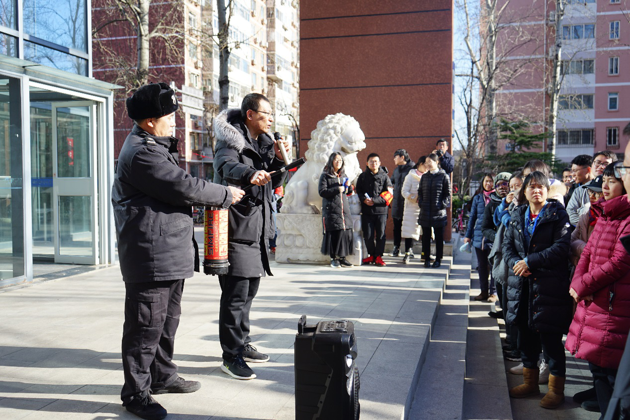 演练结束后,保卫保密部(处)白云飞老师现场为参演师生讲解如何正确使用灭火器,并指导师生通过电子模拟设备进行灭火操作。