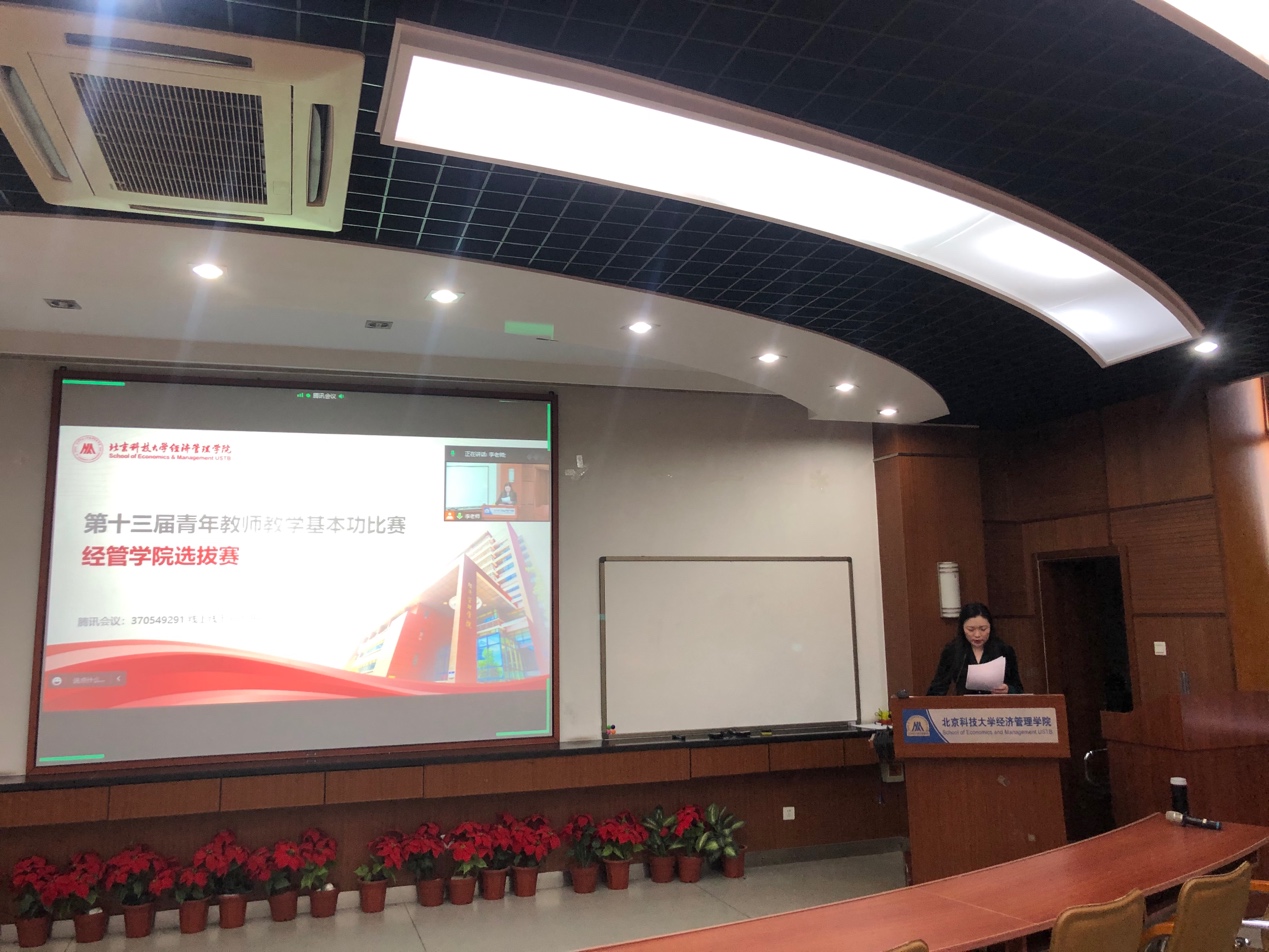 为贯彻落实我校《关于举办beat365正版唯一官网第十三届青年教师教学基本功比赛的通知》要求,切实加强我院青年教师队伍建设,搭建青年教师成长平台,引导青年教师钻研教学基本功,进一步提升青年教师的教学能力,2022年12月28日,beat365正版唯一官网第十三届青年教师教学基本功比赛在经管楼313室如期举行,比赛分为上、下午两个场次,共有13名青年教师参赛。