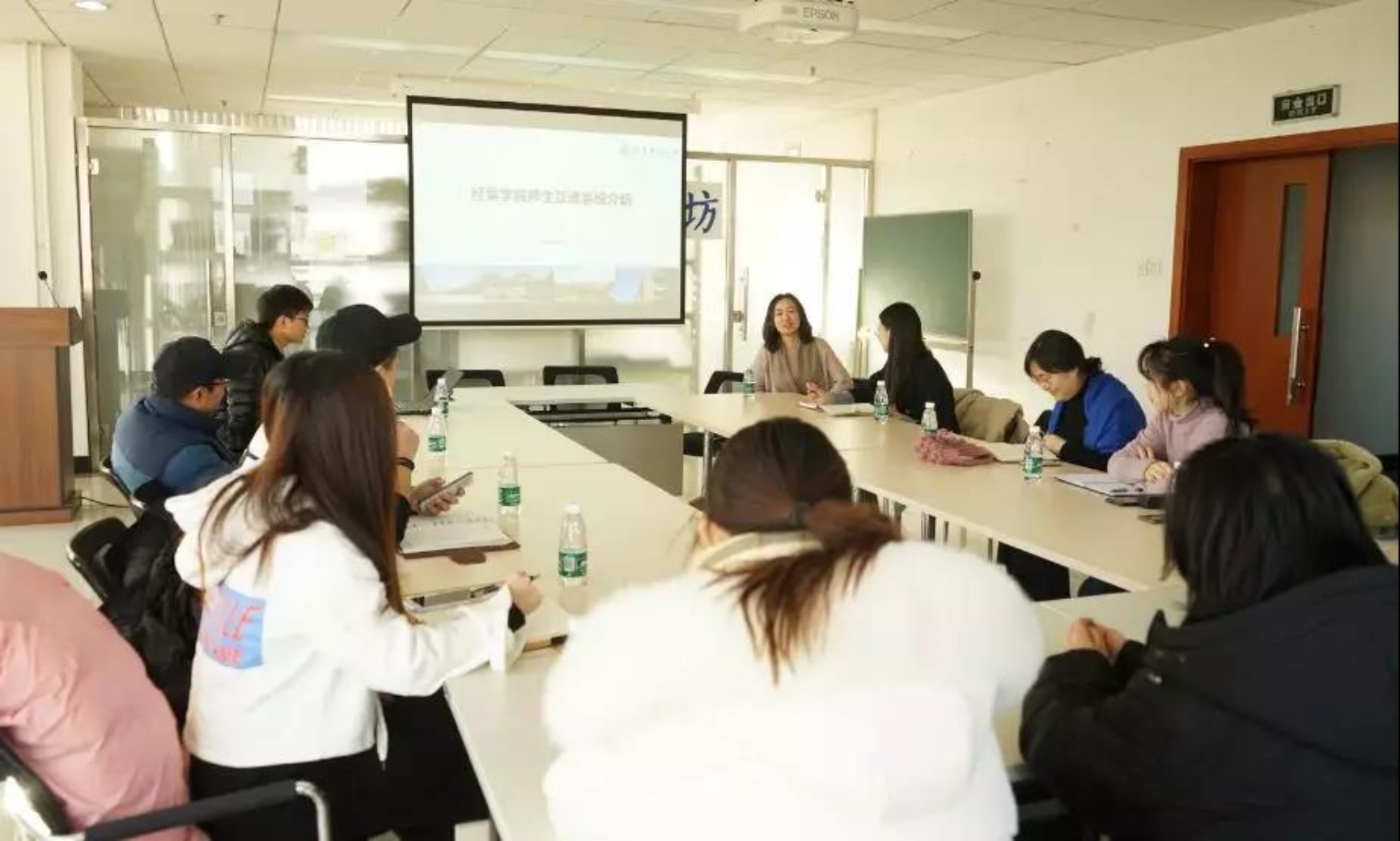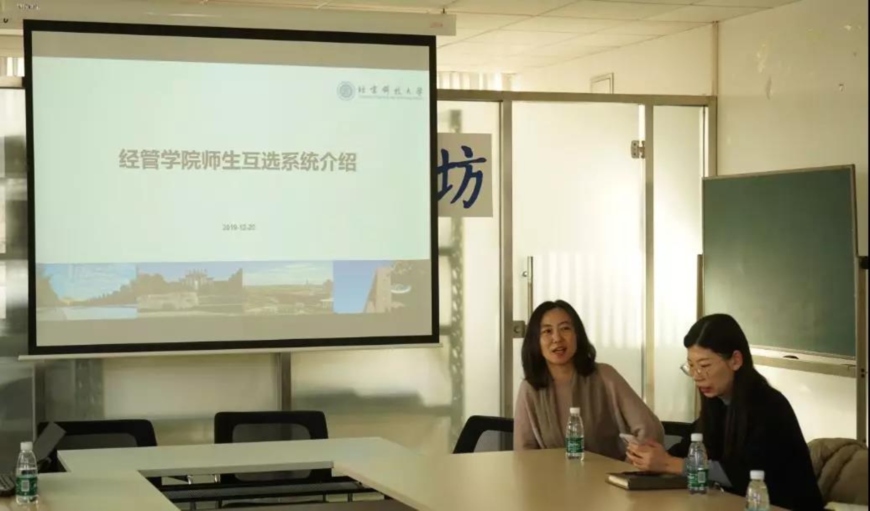 2019年12月20日beat365正版唯一官网教务处教学科科长耿悦杰、教学科赵环宇,以及学校土木与资源工程学院、冶金与生态工程学院、马克思主义学院、计算机与通信工程学院、文法学院、高等工程师学院、外国语学院、材料科学与工程学院、能源与环境工程学院、自动化学院、机械工程学院等其他兄弟学院的教务老师来东凌beat365正版唯一官网就本科生导师的师生互选系统进行了经验交流。我院教学副院长范小华、本科生教学办公室主任赵西爱参加了这次活动,学院实验信息中心副主任、管理科学与工程系教师金家华做了题为“经管学院师生互选系统介绍”的汇报。