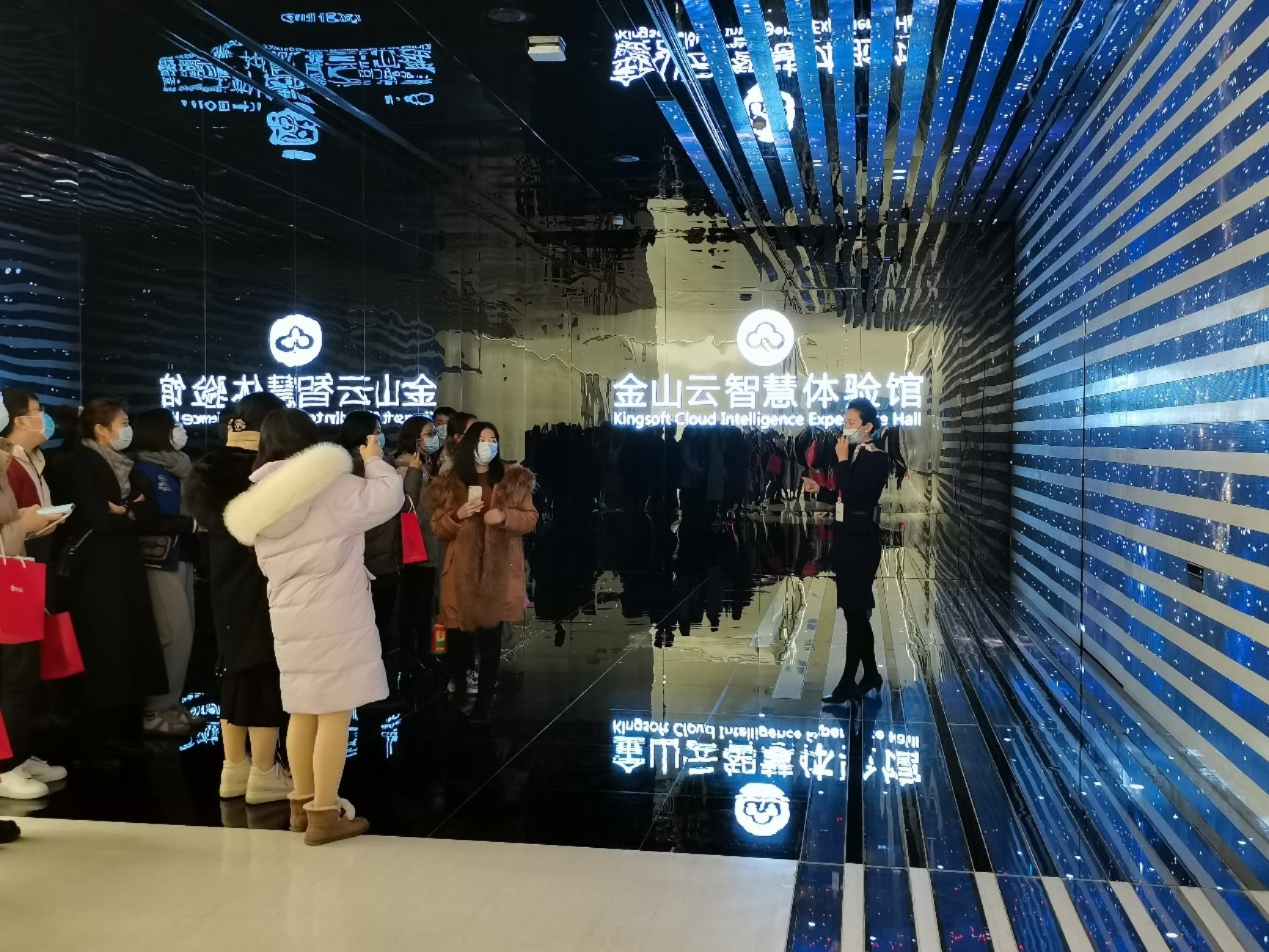 会后,金山云向导带领北科大师生参观了金山云的智慧体验馆,分别对智慧媒体、智慧社区、智慧工业、智慧金融领域进行了简介。