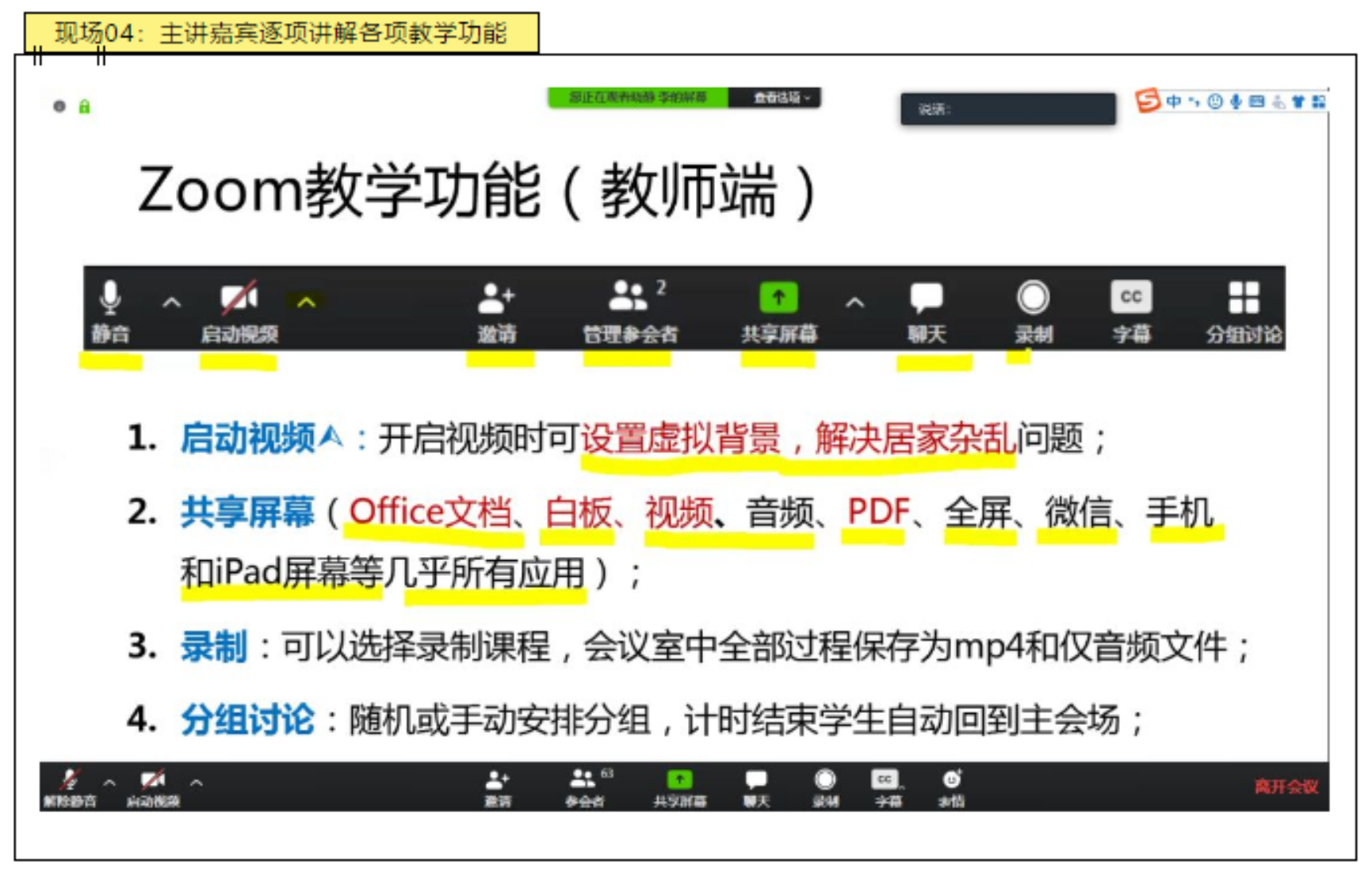 会后,主讲嘉宾李晓静老师将她的PPT和精心录制的四个讲解小视频分享到研讨会微信群里供大家下载学习,并在研讨群和老师们继续讨论Zoom在线上教学中的使用。