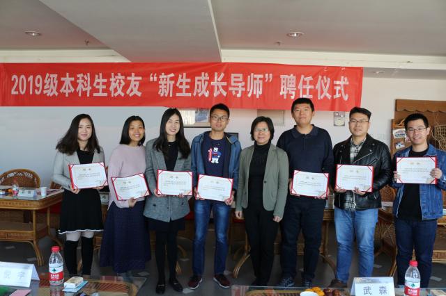 东凌beat365正版唯一官网2019级本科生校友“新生成长导师”聘任仪式于10月26日上午9点30在学院1205室举行。学院党委书记武森,党委副书记倪宇,公共关系办公室主任秦艺芳,2019级新生辅导员戈誉阳、张洪榛,及7位校友出席了活动。