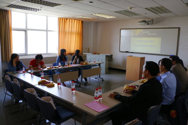工贸93、工会93和管信93级毕业20周年的校友也分别邀请了本专业的教师在经管楼909、1009和1109室进行了师生见面会。经济贸易系主任冯梅、支部书记王宾容、以及阚宏和盛仲麟两位老师,管理工程系支部书记杨建华以及崔健双、高学东和魏桂英老师,财务会计系主任肖明、金融工程系支部书记王未卿以及退休教师全介和瞿国忠老师,还有管93级当年的辅导员庞雪峰老师,都分别来到了各个专业的师生见面会现场。戴淑芬、范小华和温雅三位院领导也抽时间来到93级各专业校友见面会现场短暂交流。