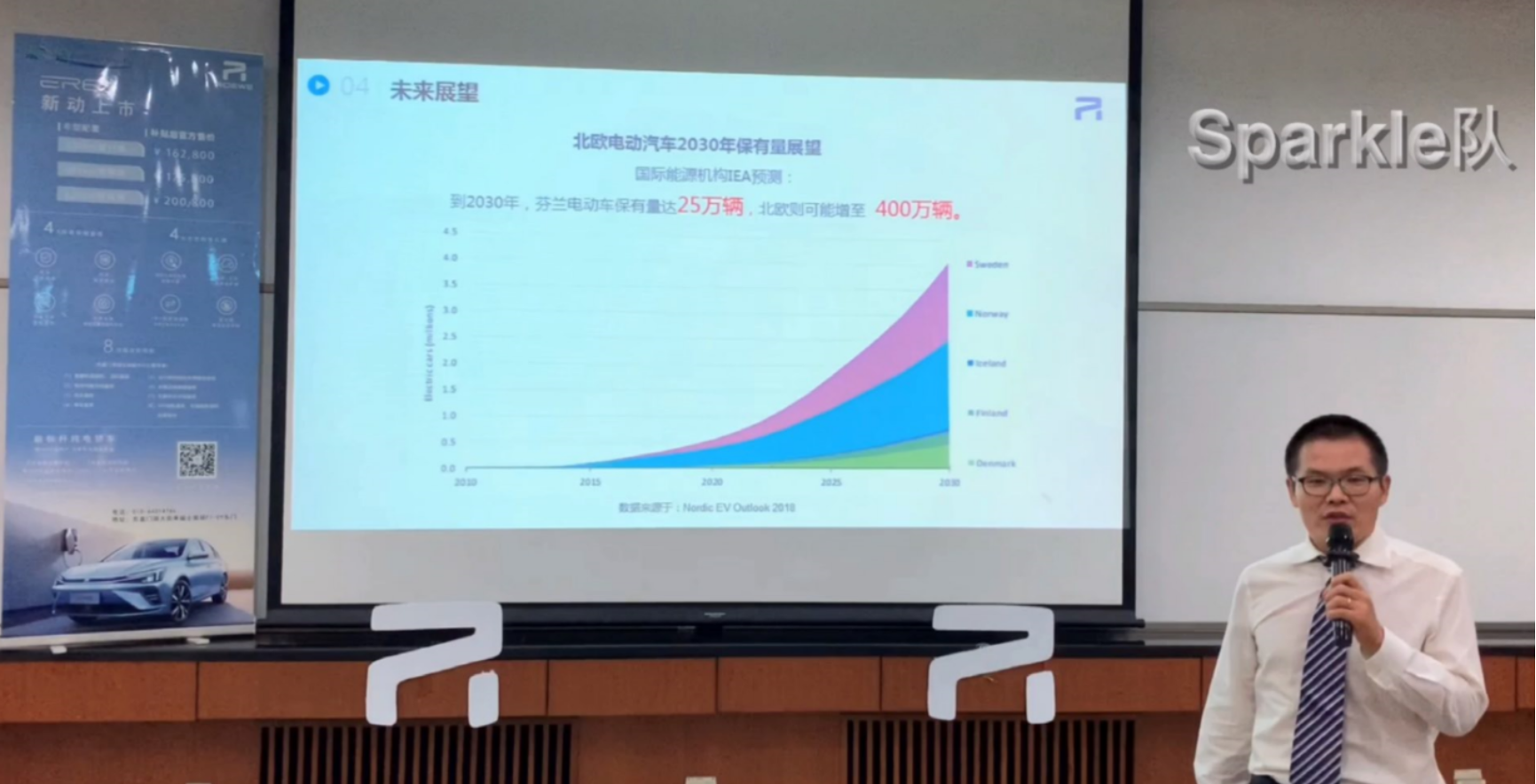 本届的商演案例是荣威ER6新标杆纯电轿车的“双循环”之路。我校的“Sparkle”团队在商演视频录制阶段知行结合,一方面通过网络查询资料并咨询相关行业的专业人士来积累信息数据,另一方面亲自前往北京的荣威R-Store的体验店实地考察,为后续的案例分析打下坚实的基础。