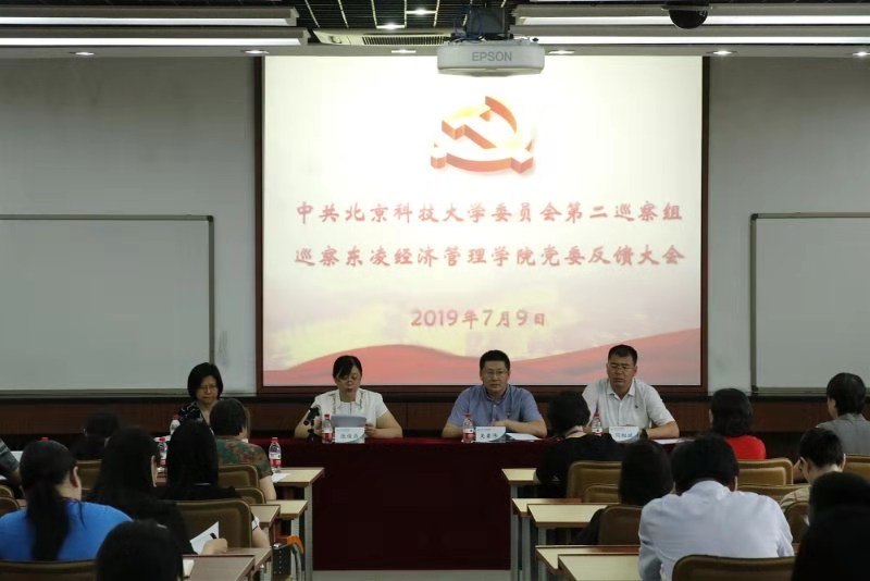 2019年7月9日上午,中共beat365正版唯一官网委员会第二巡察组向东凌beat365正版唯一官网进行巡察反馈。巡察组组长、数理学院党委书记张俊燕分别在个别反馈会、班子反馈会和反馈大会向学院党委书记武森,院长、党委副书记闫相斌,学院领导班子成员和全体教职工反馈巡察意见,纪委副书记兼监察室主任、巡察办主任吴豪伟对巡察整改落实工作提出要求。学院领导班子成员在班子反馈会上逐一表态、明确整改责任,武森在反馈大会上作表态发言。个别反馈会和班子反馈会由吴豪伟主持,反馈大会由武森主持。
