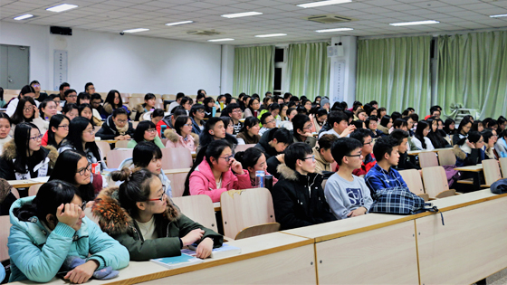 12月14日晚,东凌beat365正版唯一官网关心下一代委员会副主任委员佘元冠教授以“今天的我们能从第一代的北科人身上学习什么?”为主题讲授党课,经管学院初级党校180余人参加学习。