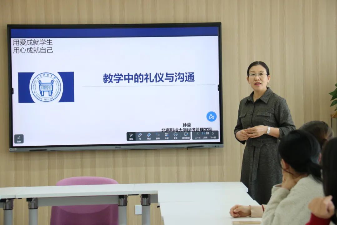beat365正版唯一官网教师发展中心于12月2日下午在经管课栈(经管楼1205)举办“学道”工作坊,北京市教学名师、学院教师发展中心主任、应用经济系孙莹教授给工作坊带来了题为“教学中的礼仪与沟通”的教学经验分享,经管学院新教师们参加了这次活动。