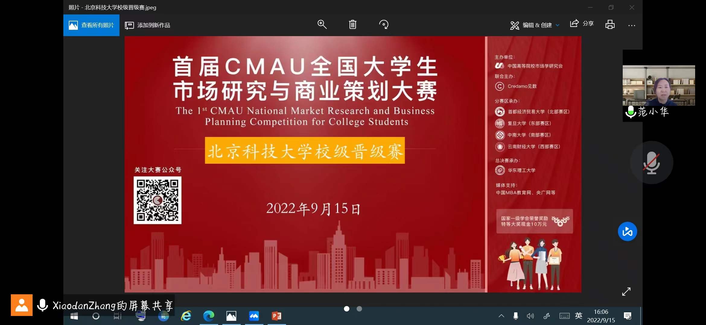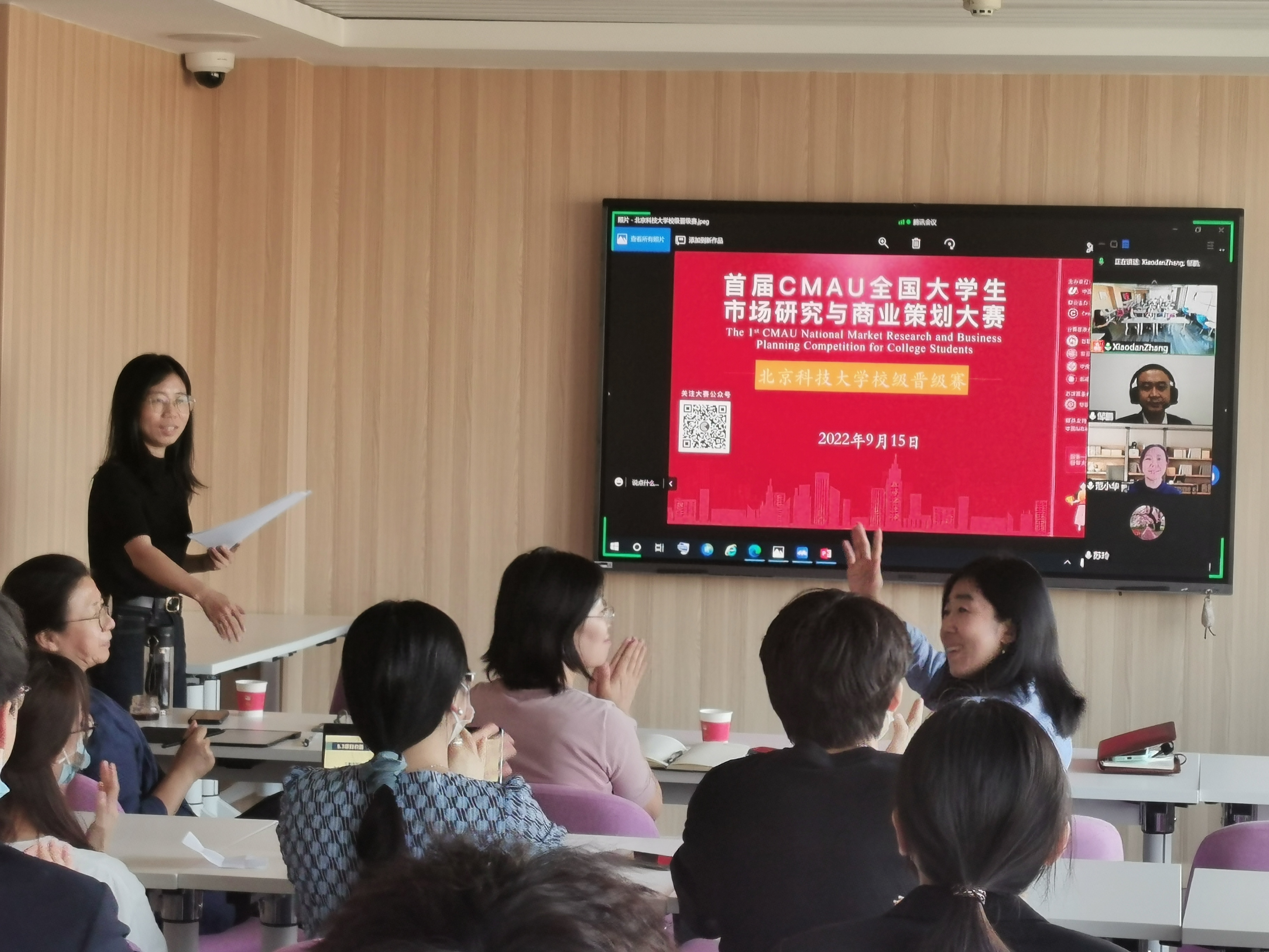 9月15日,由中国高校市场学研究会(CMAU)和Credamo见数科技公司主办,beat365正版唯一官网工商管理系承办的首届CMAU全国大学生市场研究与商业策划大赛beat365正版唯一官网校级选拔赛举行。本次比赛以线上线下相结合的形式进行,beat365正版唯一官网副院长范小华和工商管理系主任张剑出席本次活动并致辞发言。工商管理系老师胡玲、苏玲、姚卿、邹鹏担任评委,张晓丹老师主持。