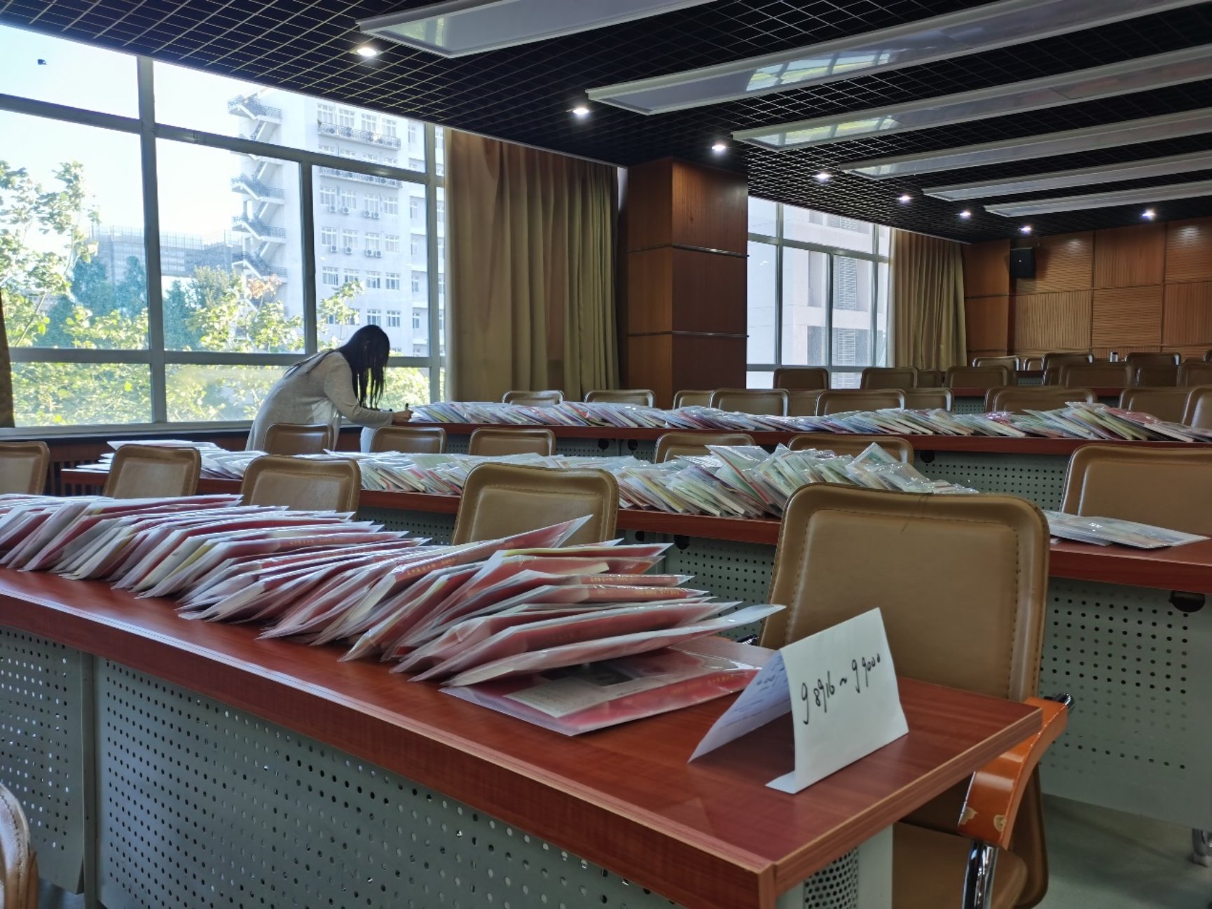 在本部校区,二十余名志愿者在培训后来到经管楼,为新生们的到来布置场地、连接设备。口罩挡不住大家的笑脸,重复的话语磨不灭志愿者们的热情。“人脸识别、提交材料、领取材料、领取银行卡、办理保险、领取院服、填写个人信息表……”整套流程背后是反复的思量、是人性化的一条龙式设计。