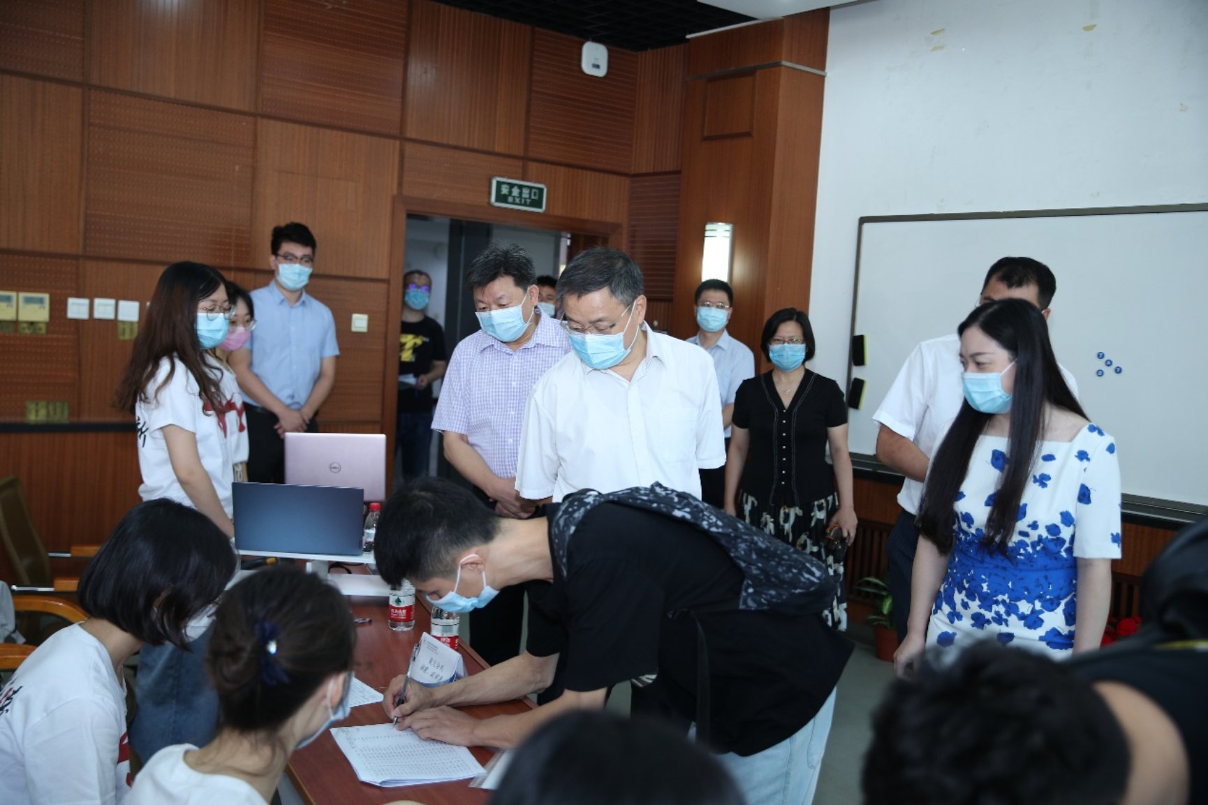为响应教育部和校方有关要求和部署,学院安排两台电脑同时进行人脸识别环节,同时辅助两名辅导员老师进行人工识别,在保证信息准确的同时大大提高了报到效率,从源头简化了整套报到流程。