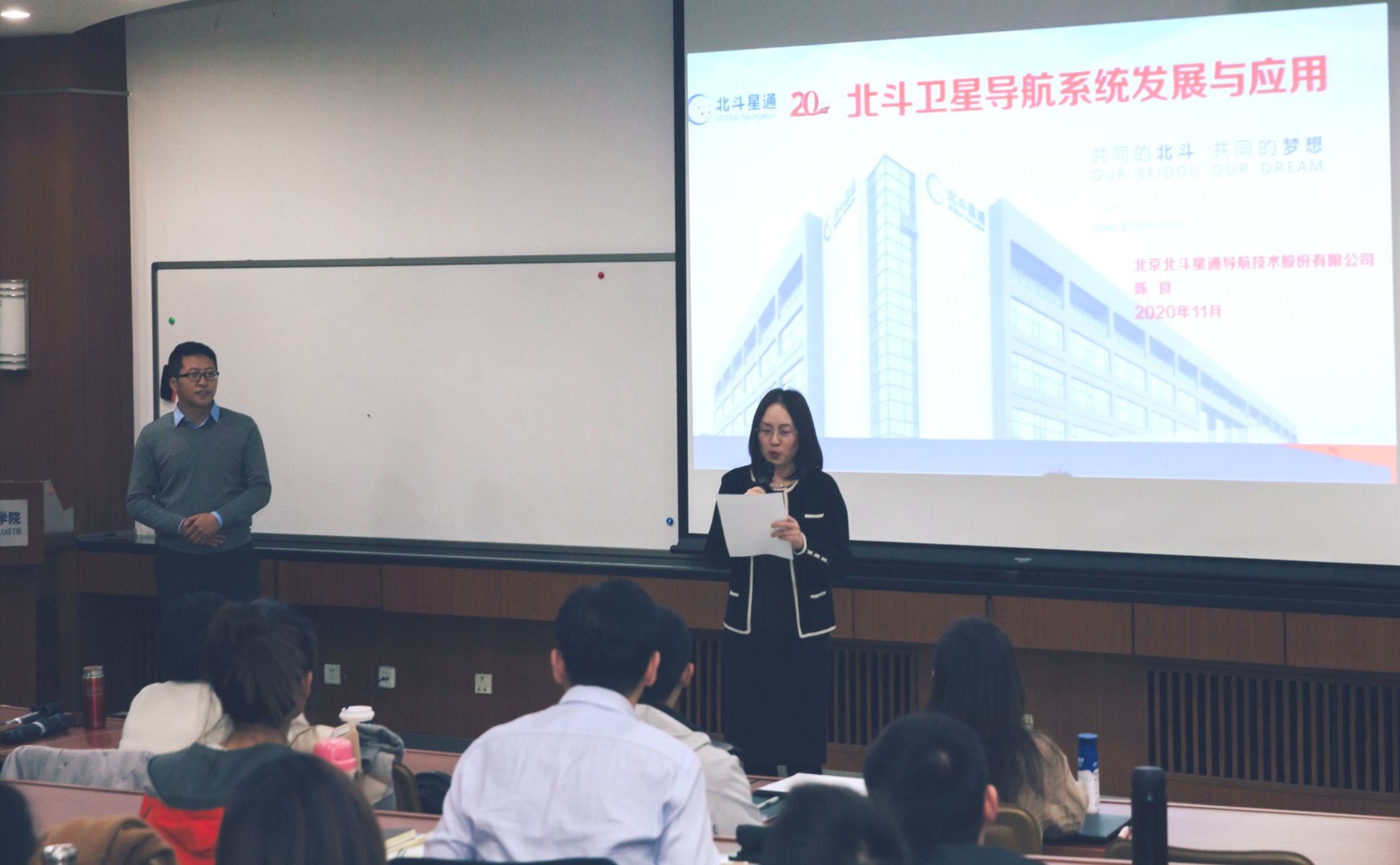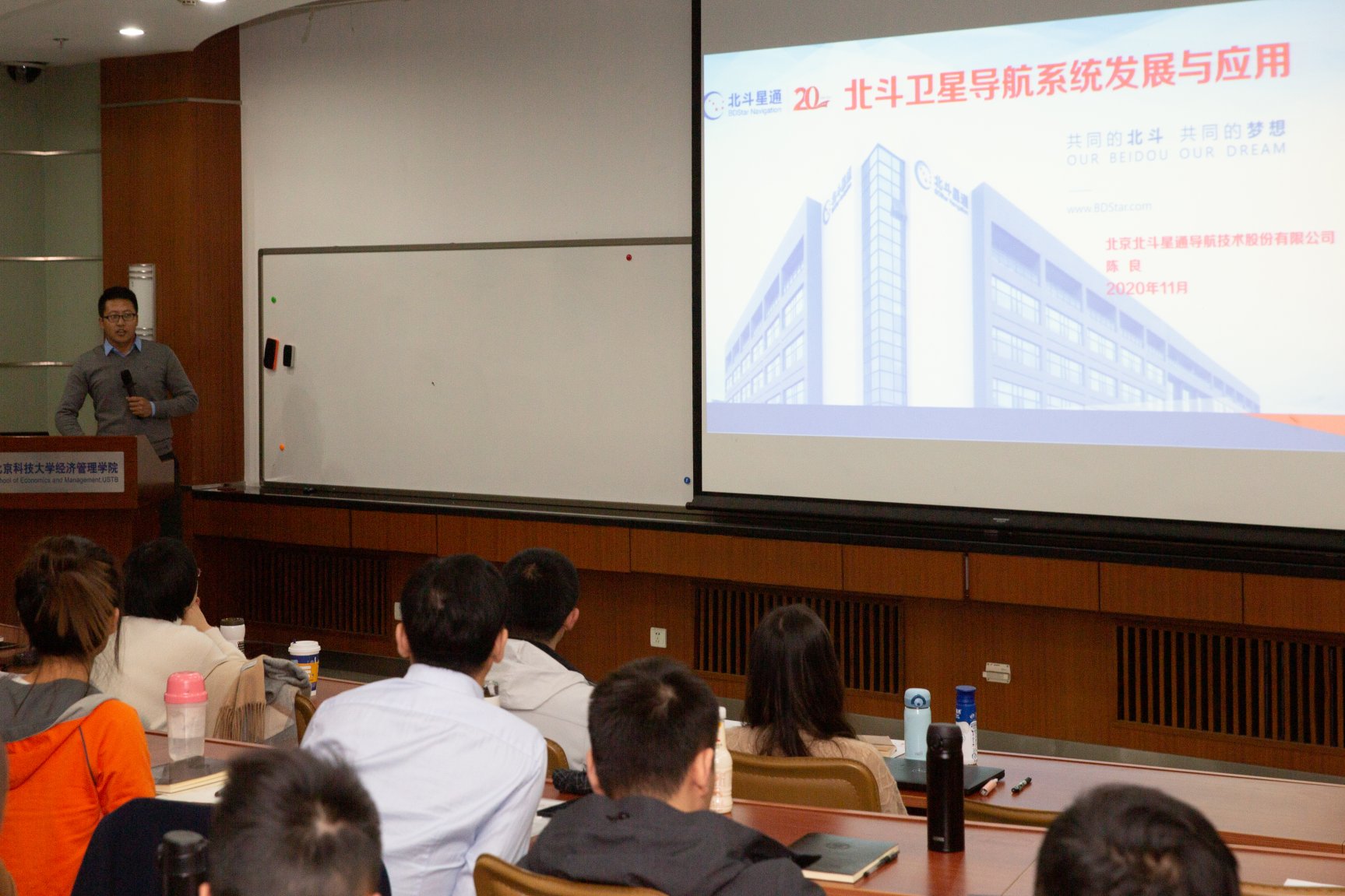 2020年11月21日晚,北斗星通集团公司研究院博士后技术总监陈良博士受邀为beat365正版唯一官网MBA集中班做专题讲座,专硕中心李晓静主任以及集中班的五十余名同学参加了本次讲座。
