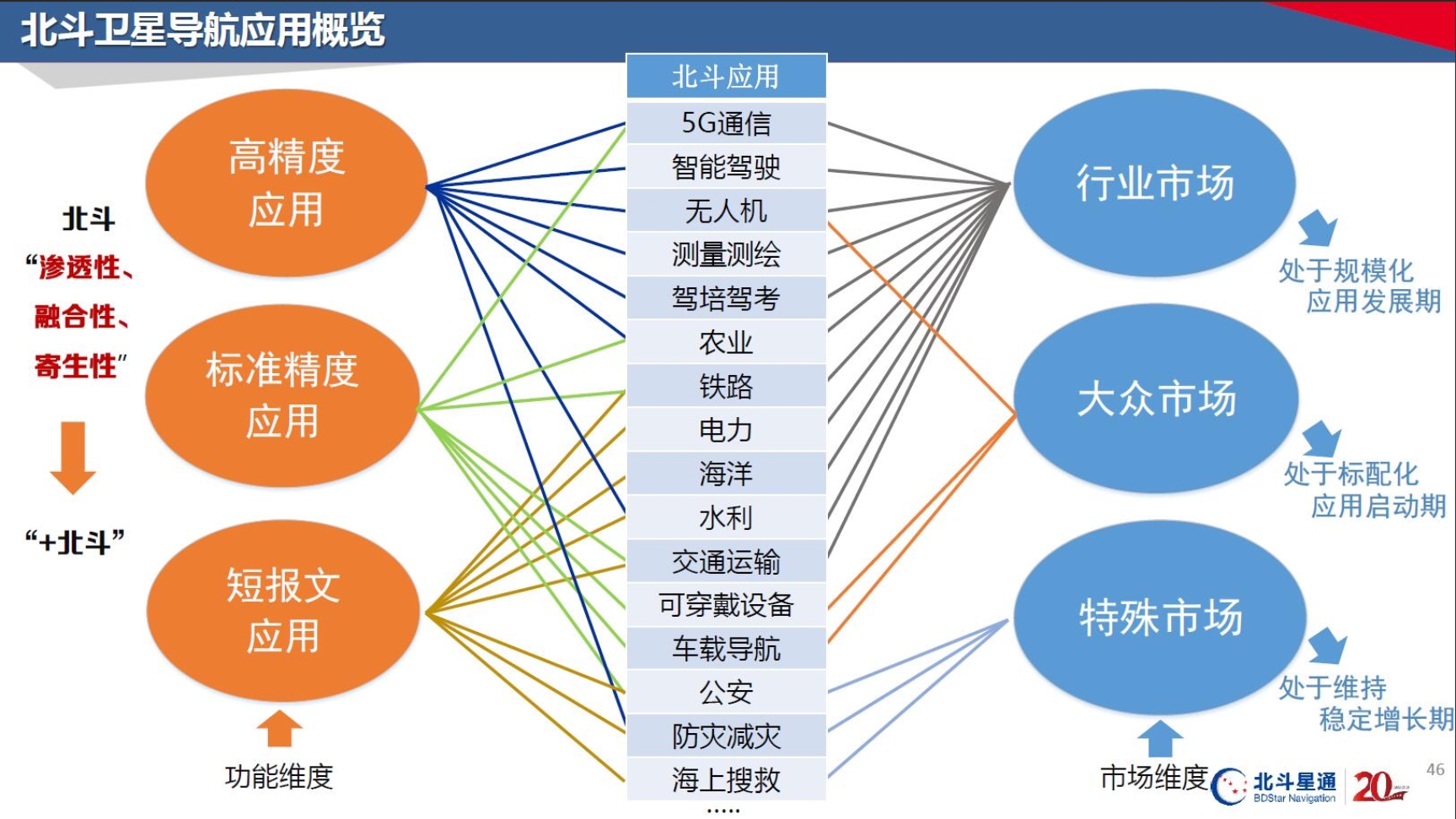 如今,我国实现了卫星导航基础产品的自主可控,逐步应用到国民经济和社会发展的各个领域。2019年中国卫星导航产业产值达到3450亿元,北斗技术不仅在传统的高精度产品上应用广泛,更是在包括智能网联汽车、无人机等新兴市场取得了较大成功,北斗技术以其渗透性、融合性和寄生性不断拓展市场维度,寻求新的发展。此外北斗技术在海洋渔业、森林防火、野生动物保护等方面发挥了不可替代的作用,有效运用于灾前检测、灾中监控、灾后重建,让我们能最大程度降低灾害带来的损失。首任北斗卫星导航系统总设计师孙家栋院士所言,“北斗的应用只受人类想象力的限制”。我们期待北斗的发展为我们带来新的改变。