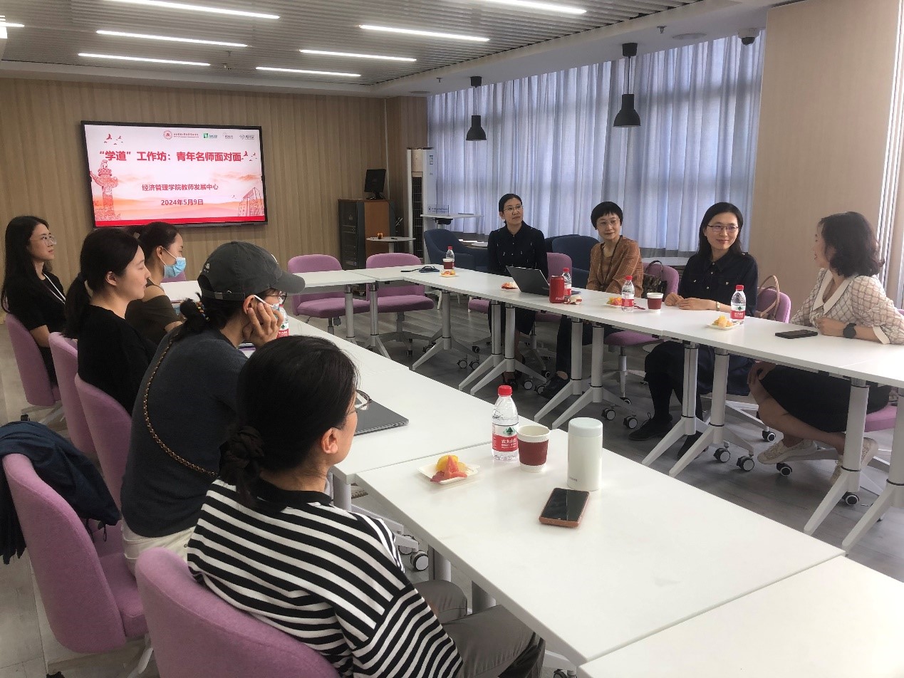 5月9日下午,beat365正版唯一官网教师发展中心在经管课栈(经管楼1205)举办题为“青年名师面对面”的“学道”工作坊,邀请北京市高等学校青年教学名师、beat365正版唯一官网数理学院储继迅教授与青年教师面对面深入交流。学院教师发展中心执行主任孙莹主持工作坊,副院长范小华参加本次交流活动。