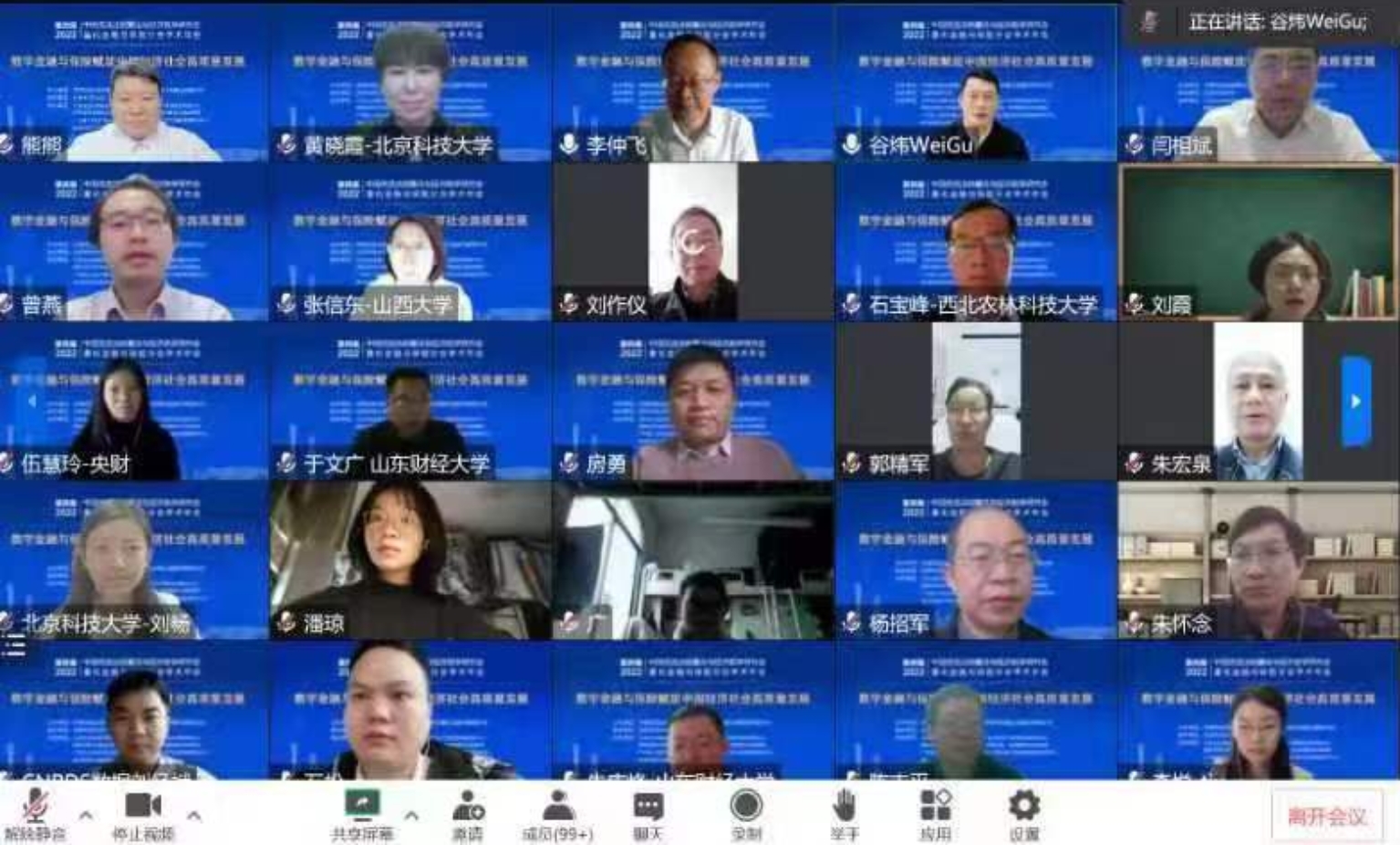 本届年会聚焦“数字金融与保险赋能中国经济社会高质量发展”,旨在深入交流数字金融、金融科技、金融创新、金融安全、大数据金融、互联网金融、金融安全、资产配置、行为金融、养老金融、保险精算等相关领域的重要热点问题。此次学术盛会吸引了来自中国科学院、哥伦比亚大学、约翰霍普金斯大学、佛罗里达大学、香港科技大学、清华大学、北京航空航天大学、beat365正版唯一官网、天津大学、对外经济贸易大学、西南财经大学、中央财经大学、上海财经大学、中山大学、南方科技大学、厦门大学、华东师范大学、湖南大学、四川大学、西安交通大学等近70所高校专家和学者以及银河证券和CNRDS的业界专家近800人,通过腾讯会议和直播的方式参加会议,开展学术交流和讨论。