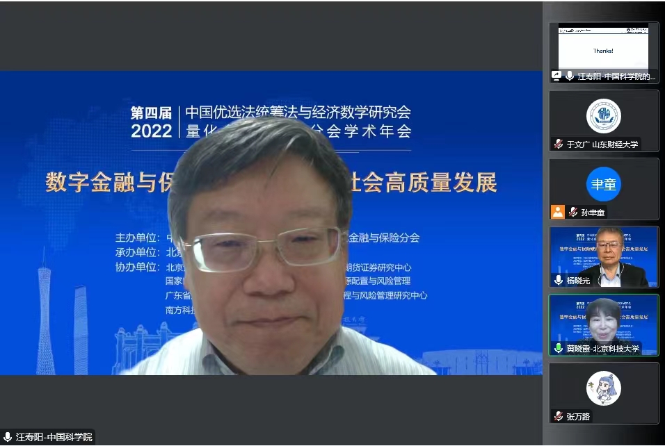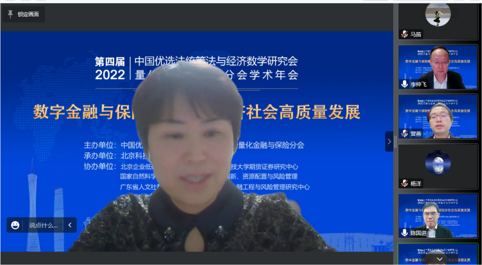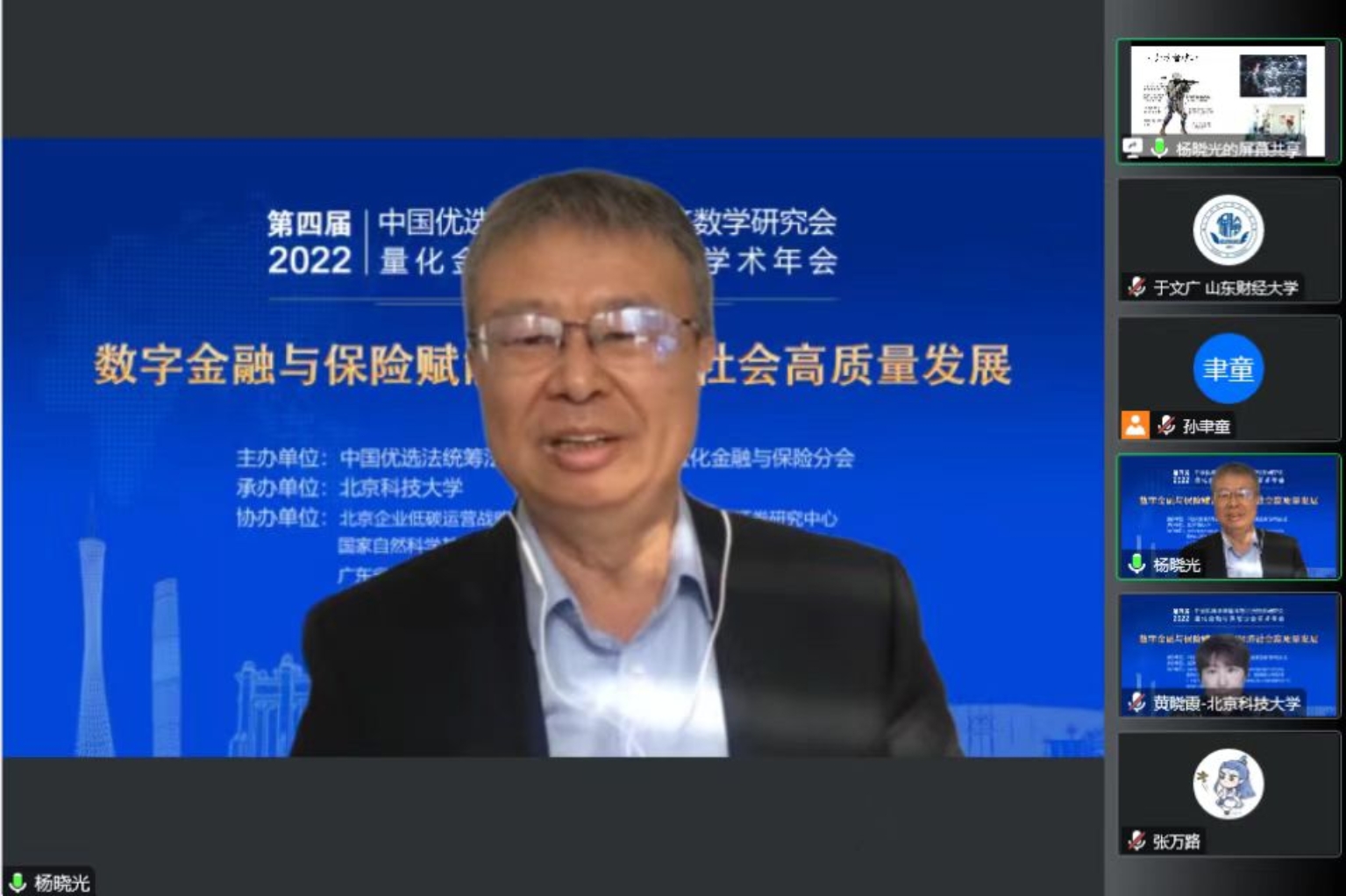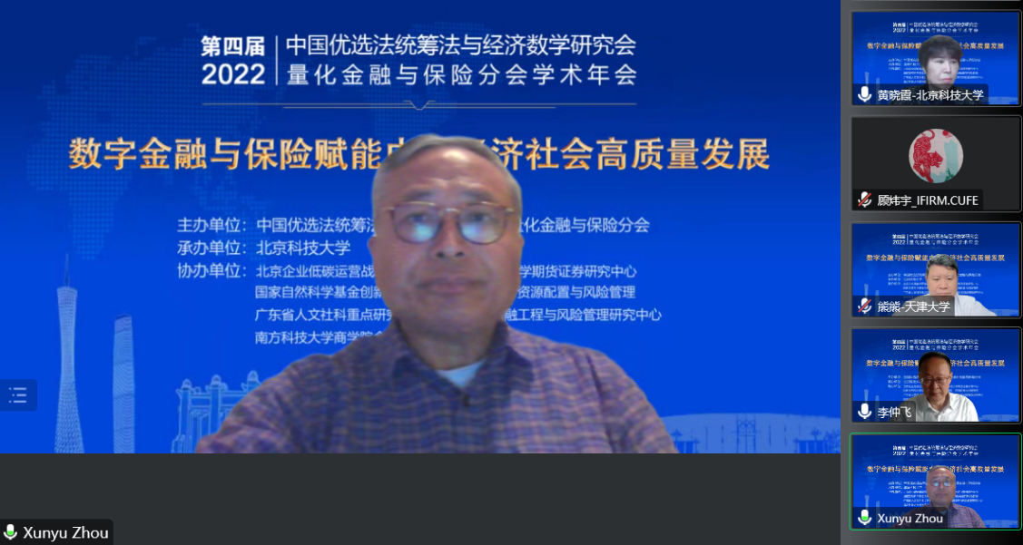 2022年12月3日至4日,第四届(2022)双法研究会量化金融与保险分会学术年会在线胜利召开。本届年会由中国优选法统筹法与经济数学研究会(简称中国“双法”研究会)量化金融与保险分会主办,beat365正版唯一官网承办,北京企业低碳运营战略研究基地、beat365正版唯一官网期货证券研究中心、国家自然科学基金创新研究群体:金融创新、资源配置与风险管理、广东省人文社科重点研究基地:中山大学金融工程与风险管理研究中心,南方科技大学商学院金融系协办。