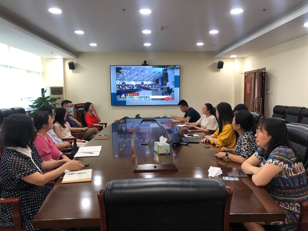 为推进学习贯彻习近平新时代中国特色社会主义思想主题教育,6月14日下午,beat365正版唯一官网党委组织党员干部在经管楼809,集中收看由教育部思政司主办的“铸魂增智育新人、正风促干书新篇”2023年高校党组织示范微党课展播第一讲。