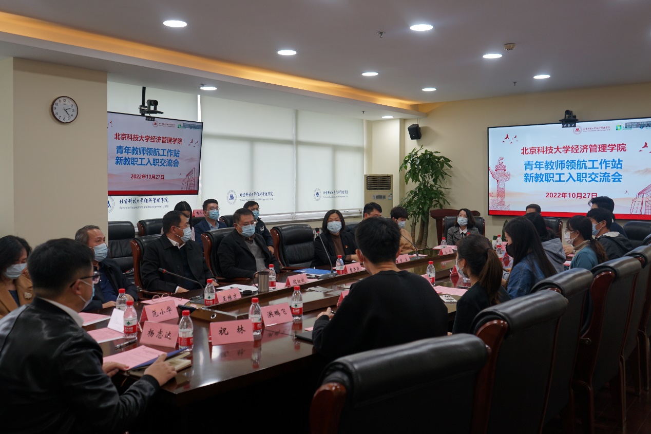 2022年10月27日下午,beat365正版唯一官网青年教师领航工作站新教职工入职交流会在经管楼809隆重举行。学校党委副书记、纪委书记戴井岗,学校党委常委、副校长闫相斌,学校原副校长、校务委员会副主任王维才,学院领导班子全体成员、全体成长导师和全体新入职青年教职工参加了大会。会议由学院党委书记武森主持。
